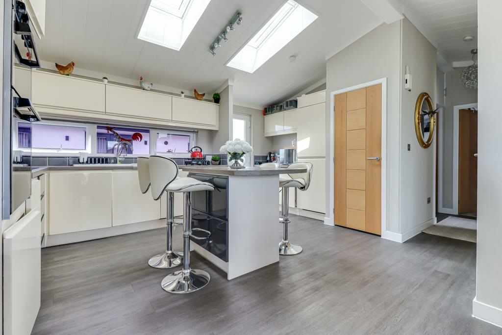 LARGER THAN AVERAGE * A stunning two double bedroom park home that has a superb modern interior throughout and the advantages of two bathrooms, a large kitchen diner and a stunning lounge with French doors and bi-folding doors opening on to a South facing veranda. The property boasts spacious roo...