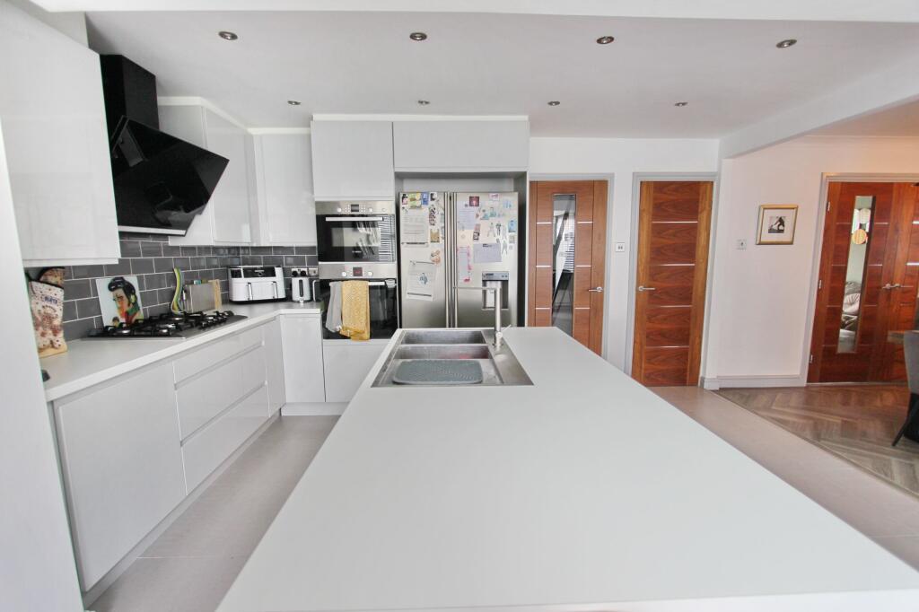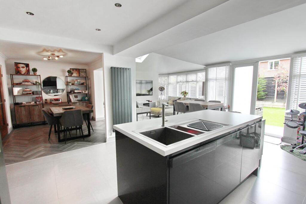 This property is a 4-bedroom, 2-bathroom detached house located in Radcliffe, Bury. The property benefits from a modern extension to the rear, significantly increasing the living space and creating a large open-plan kitchen/diner/family area. The extension also features a conservatory-style sunroom. The property appears to be in excellent condition, with a recently modernised kitchen and bathrooms. There is also a good-sized garden. The location is convenient, with several primary schools within a mile radius and train stations within a few kilometers. The property is listed at £440,000, which is slightly higher than the average price for the area (£360,921), but the larger size and modern updates could justify this. More information on the plot size and condition of comparable properties would be needed to make a definitive statement on price.