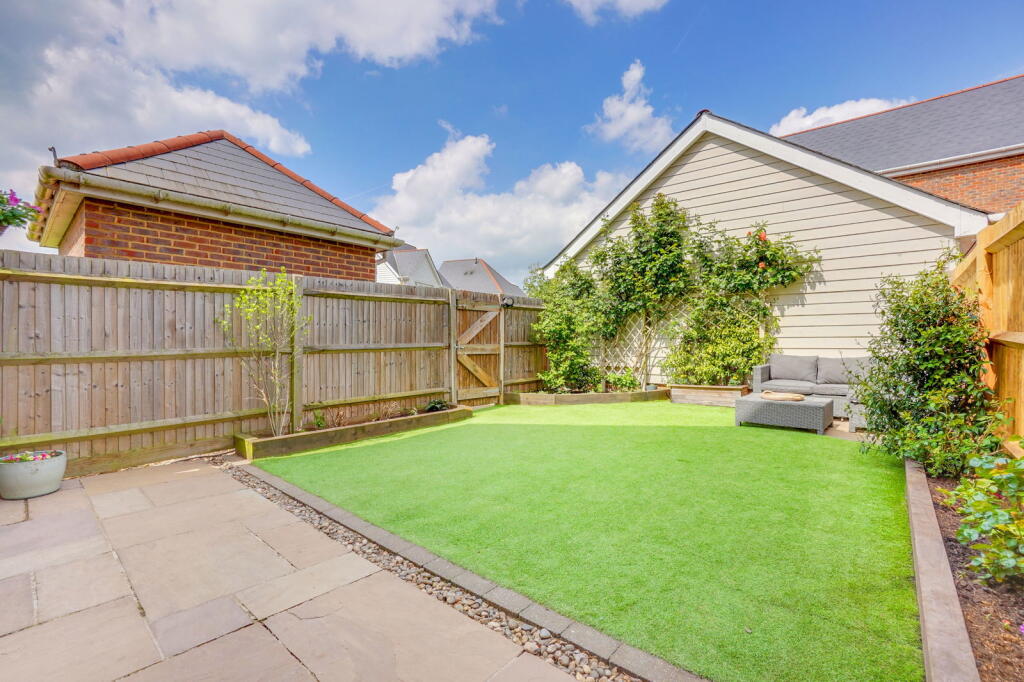 The property includes a garden with artificial turf, adding to its appeal. The size of the garden, while not explicitly stated in square footage, seems adequate for a property of this size.