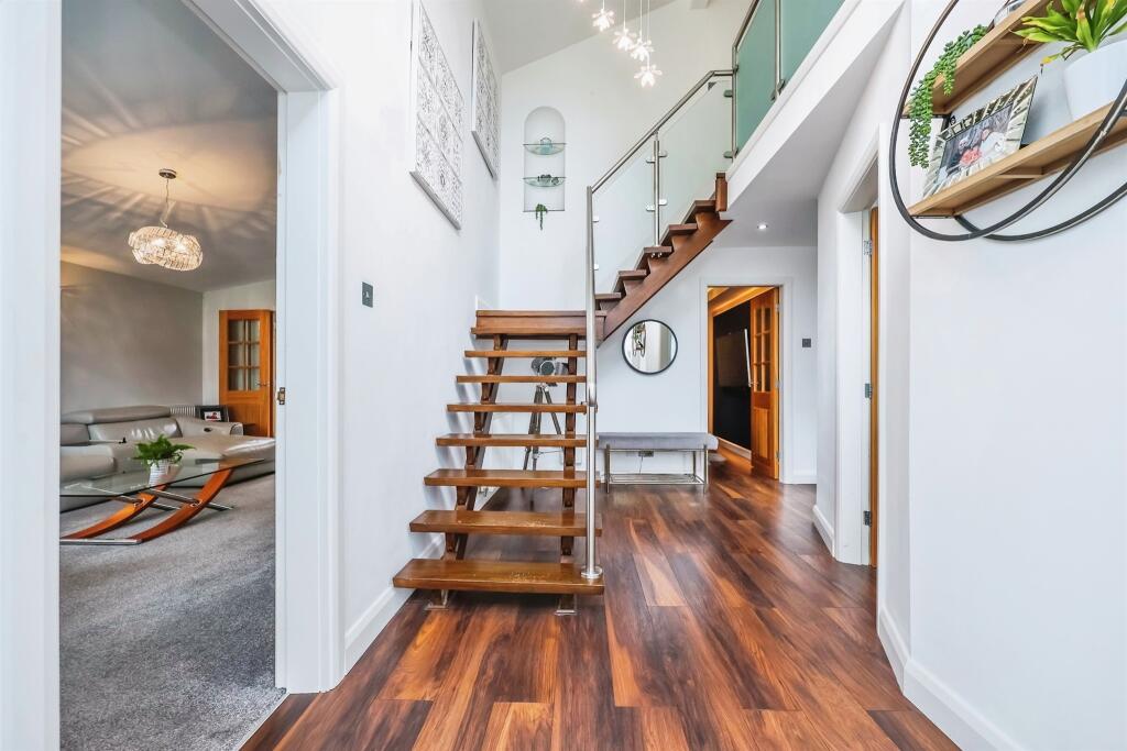This four-bedroom, four-bathroom detached property located on Belper Road in Stanley Common, Ilkeston, Derbyshire, presents itself as a well-maintained and modernized family home. The high-quality finishes and contemporary design are evident in the provided photographs. The property features a modern kitchen with integrated appliances, stylish bathrooms, and a spacious living area with a large extension that also has a pool table. The inclusion of a substantial garden adds to the property’s appeal, offering ample outdoor space. A key feature is the location within the desirable village setting of Stanley Common, which often commands premium prices. The proximity to Stanley Common Cofe Primary School, rated as ‘Good’ by Ofsted, further enhances its family-friendly appeal. The images show multiple living areas and modern fixtures suggesting a recent renovation. While the exact plot size is not specified, the photos indicate a garden of considerable size, and an attractive outdoor space, including a patio and a hot tub. The proximity to transport links such as Langley Mill railway station is a positive attribute. Overall, this property offers a blend of modern living and village charm. However, the lack of precise plot size data and insufficient detailed information regarding average prices per square foot in the immediate vicinity make a complete analysis of value challenging. A full valuation by a local surveyor would be necessary for conclusive pricing analysis. Comparable properties listed for sale in the surrounding area provide a broad price range but no specific sq footage for comparison which makes a definite determination challenging.