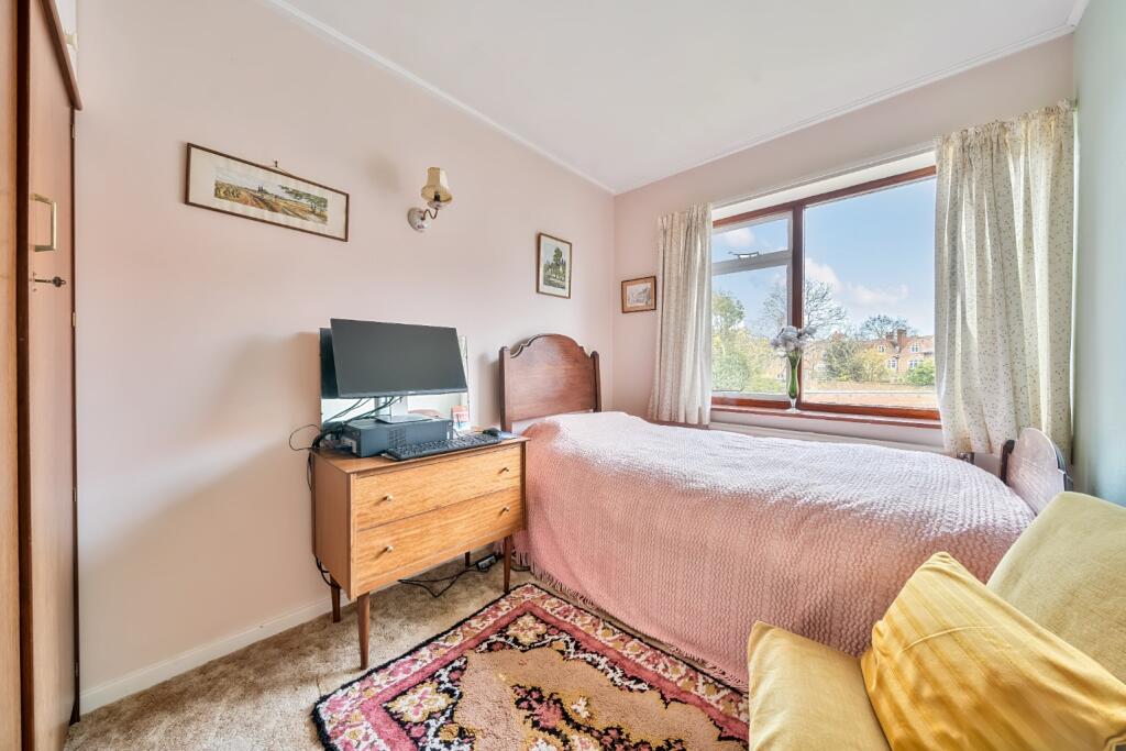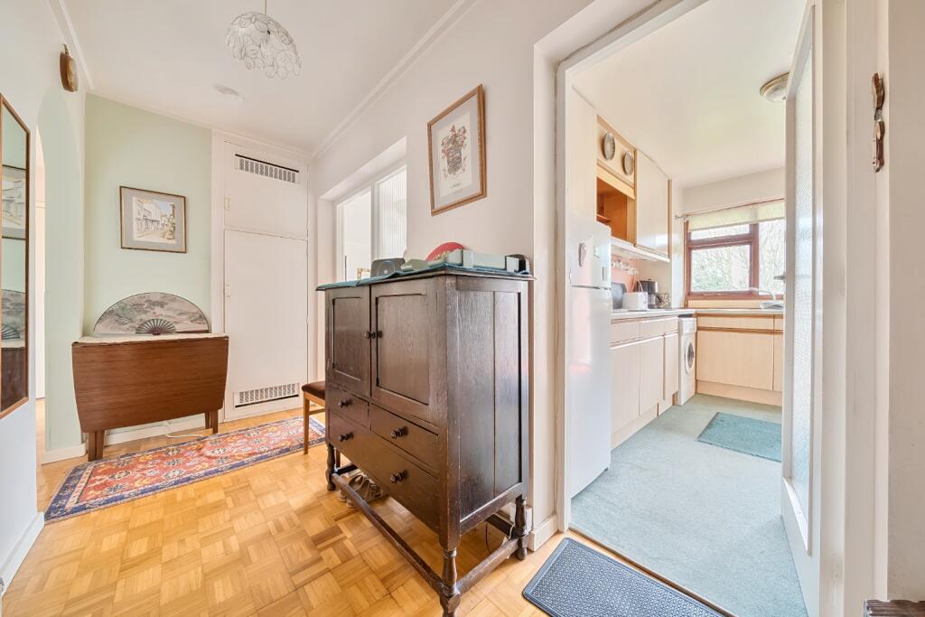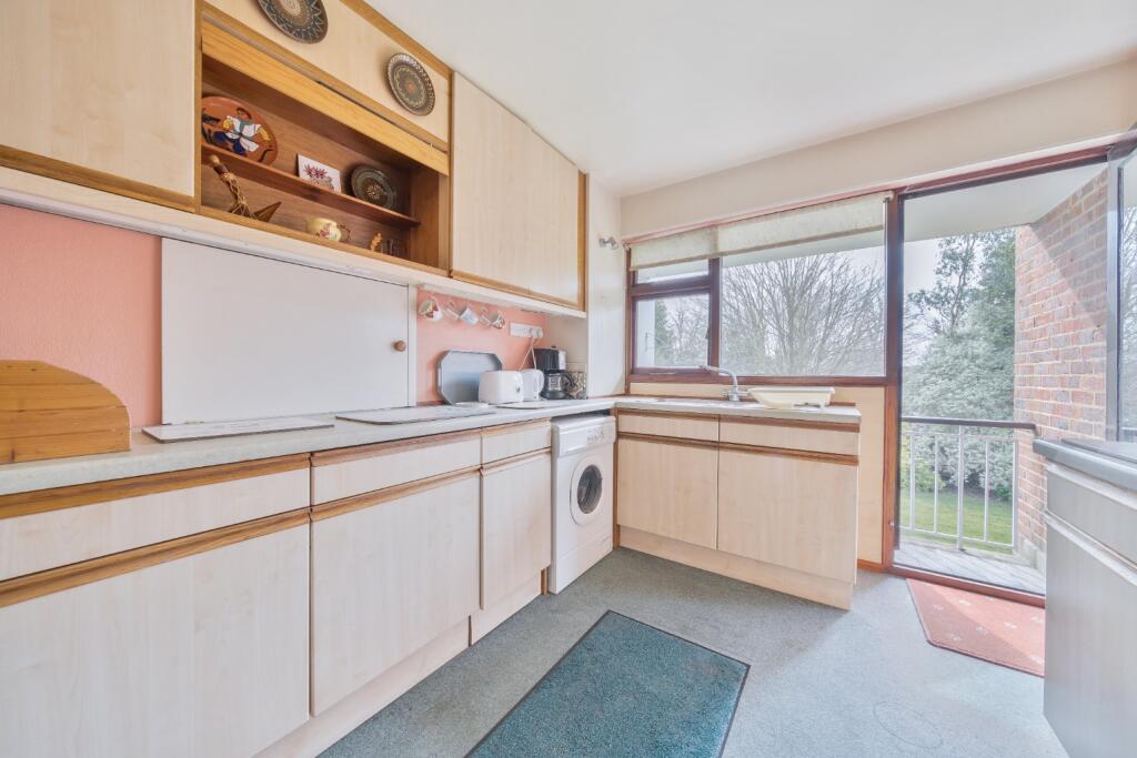Guide Price £300,000 - £320,000 Spacious three bedroom first floor flat boasting parking & garage - Offered with no onward chain - highly convenient for the town's amenities - Bathroom & additional WC - Would benefit from modernisation - Balcony overlooking the communal gardens.