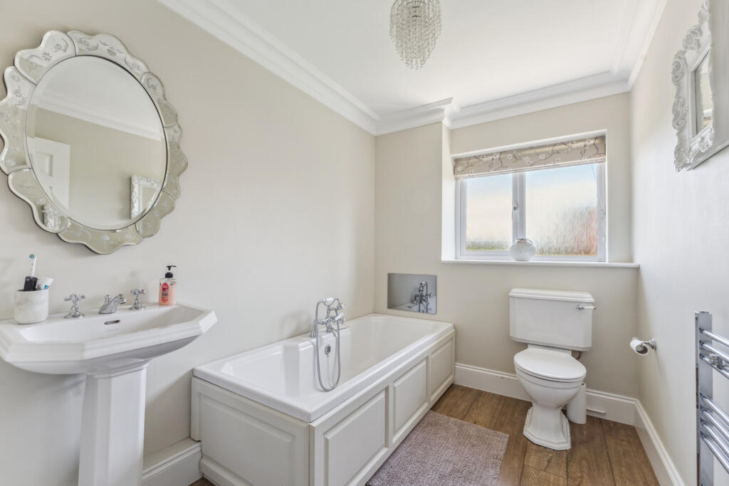 The property is a detached house located in Upper Basildon, West Berkshire. The area benefits from being relatively close to several railway stations (Pangbourne, Goring & Streatley, Theale, and Aldermaston) providing good transport links. There are also a number of schools within a reasonable distance, including Basildon C.E. Primary School and Englefield C.E. Primary School, both rated as ‘Good’ by Ofsted. This suggests a convenient location for families.