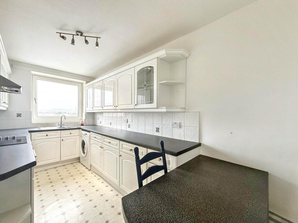 Chain free coast road apartment with beautiful direct sea views, off-road parking and walled communal gardens. Well-presented, a brilliantly sized layout is a blank canvas ready to be refreshed and updated and has 2 double bedrooms, a spacious triple aspect lounge and brilliantly large fully fitted