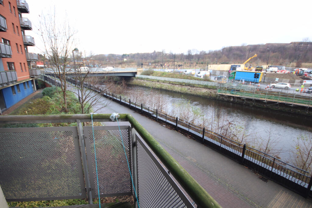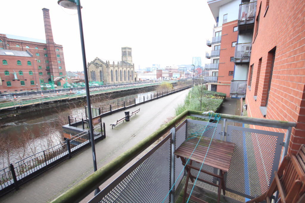 Spacious first floor riverside apartment with balcony, dual aspect living area, two double bedrooms and modern kitchen with integrated appliances. Highly sought-after location close to the city centre.