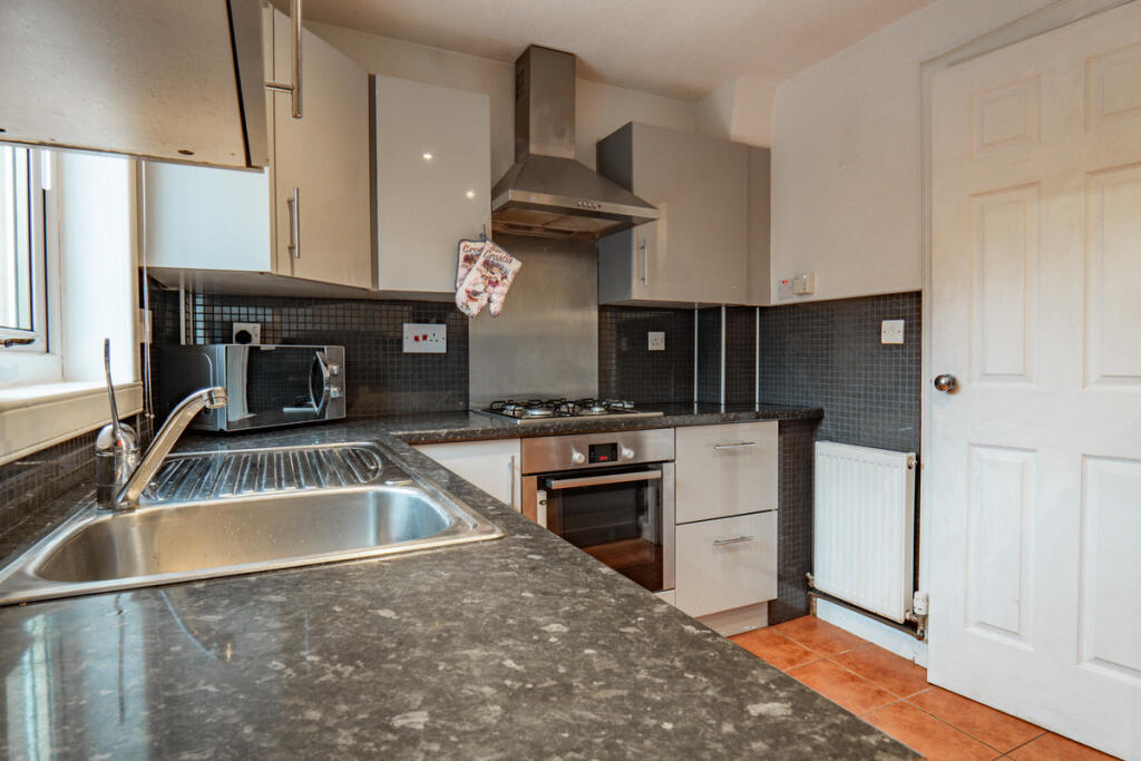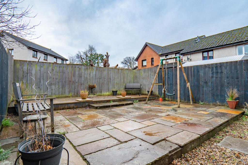This is a two-bedroom terraced property located in Culloden, Inverness. The property appears to be in good condition, with a modern kitchen and bathroom. It has a decent-sized garden with a patio area and a gravel area at the front. The property is located in a residential area, close to local amenities and schools. The list price of £160,000 seems reasonable for the property.