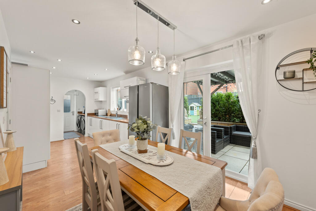 Ideal for a growing family, this detached home offers a modern kitchen diner, bright living spaces, four double bedrooms with master en suite, a private tiered garden with gazebo, driveway, garage, and access to excellent local schools