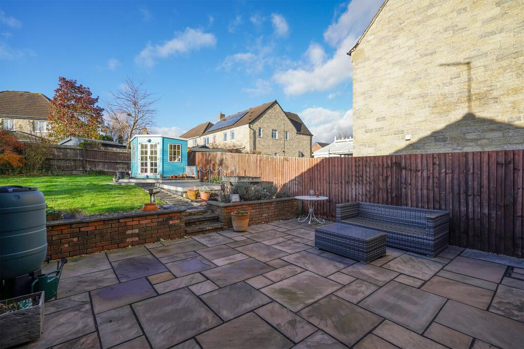 The exterior is also attractive, featuring a large rear garden that is well-maintained and provides plenty of space for outdoor living. A paved patio and additional seating areas create great spaces for entertaining. The front also boasts a generous paved driveway, suitable for multiple vehicles.