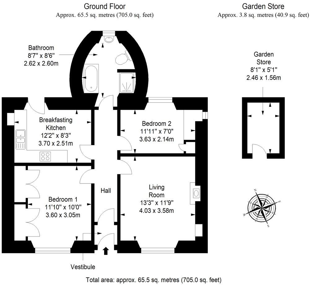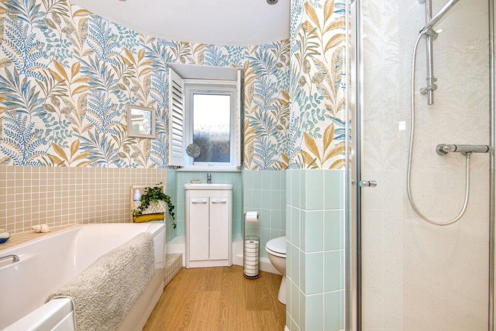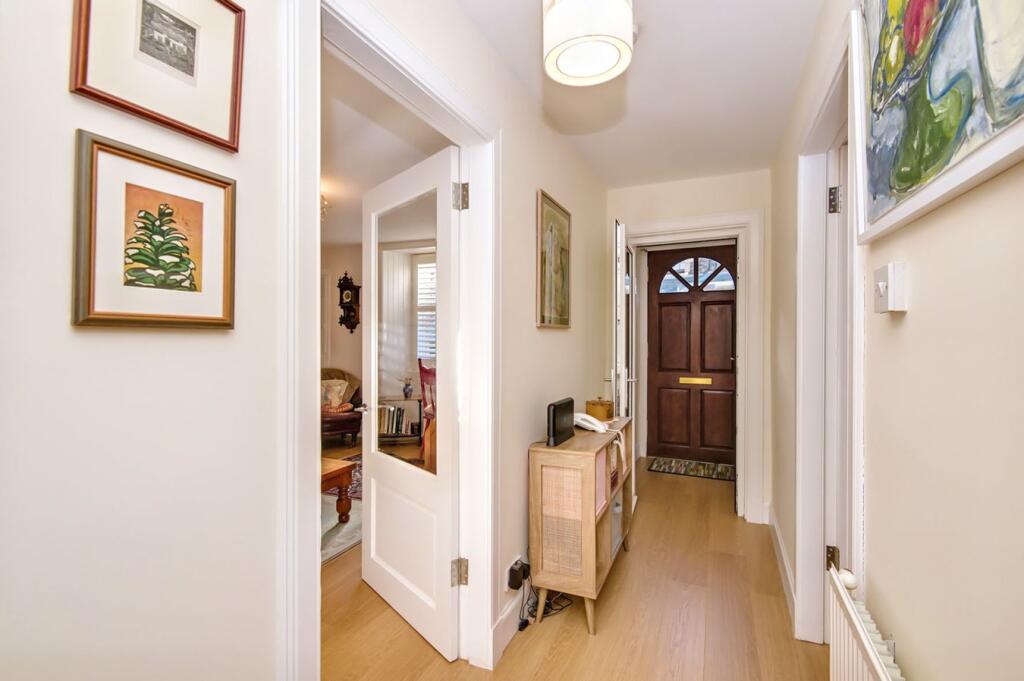 Immaculately presented two-bedroom lower flat comprises: welcoming vestibule and hall leading to a generous lounge with a log burner, bay window and recessed shelving. The kitchen provides space for dining, along with fitted units, oven, hob and extractor, with doorway giving direct access to ...