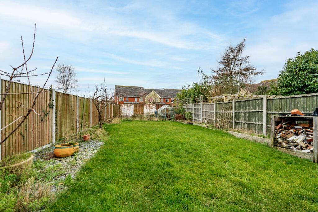 Based on the provided photographs, the property appears to be in good condition. The interior is presented well, with modern updates to the kitchen and bathroom. There is evidence of some minor cosmetic work that could be undertaken, but overall the property seems well-maintained and habitable. The garden is of a reasonable size, providing ample outdoor space. It includes a shed and patio area.