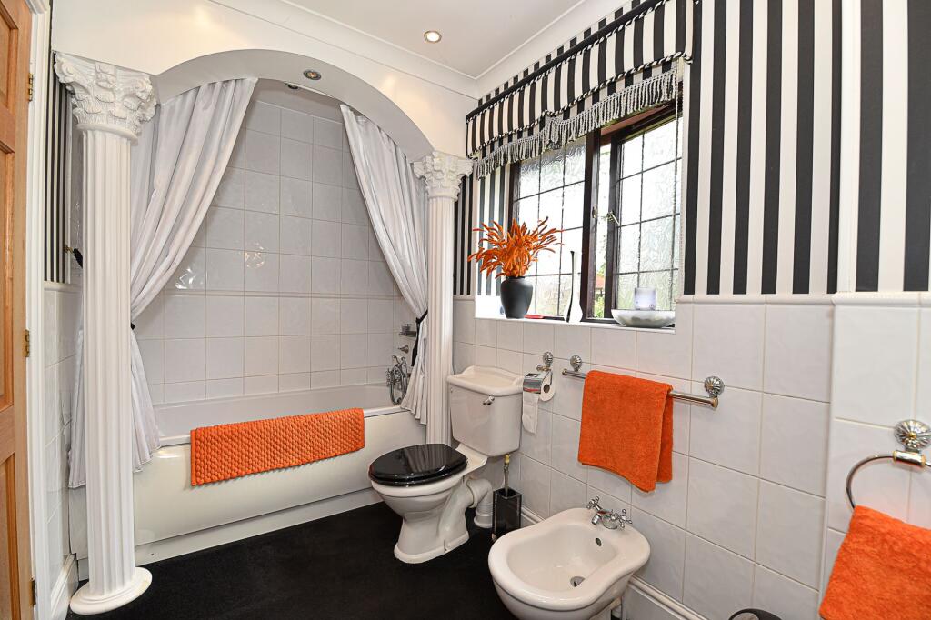 Exceptional 5-bed detached house in prime cul-de-sac location. Imposing stature on 1/4 acre plot. Grand entrance, open plan kitchen, 4 reception rooms, stunning garden with jacuzzi and bar area. Ample parking. Viewing essential for exquisite design and luxury amenities.