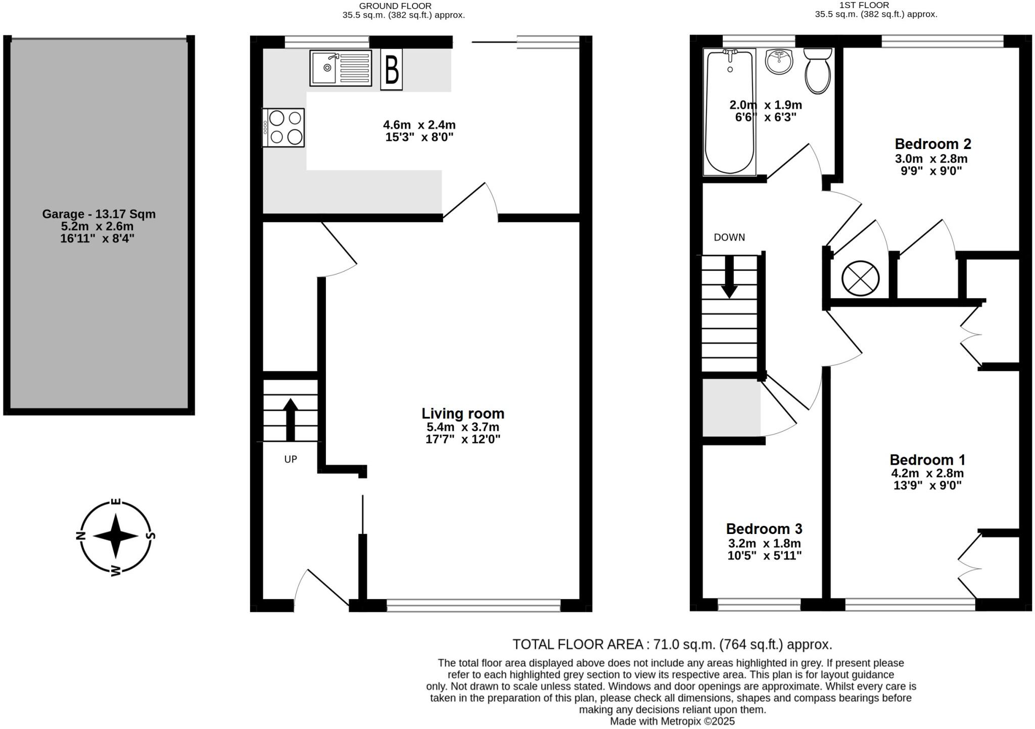 The property is located in Walmer, Deal, Kent. It’s a terraced house with 3 bedrooms and 1 bathroom, and a total area of 764.24 sqft. The list price is £345,000.