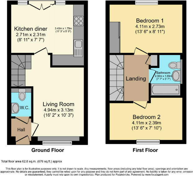 This property is a 2 bedroom, 1 bathroom semi-detached house located in Bishop’s Tachbrook, Warwick. It is listed for £300,000 and has a plot size of 676 sqft and internal area of 565.93 sqft.