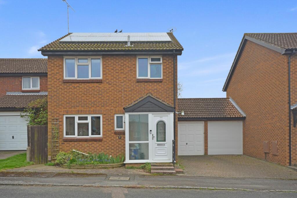 Immaculately presented 3-bed detached house in sought-after area. Modern kitchen, spacious lounge, cloakroom. Solar panels generate £1,000 p.a. Garage, driveway, loft storage, garden with patio. Close to schools and amenities.