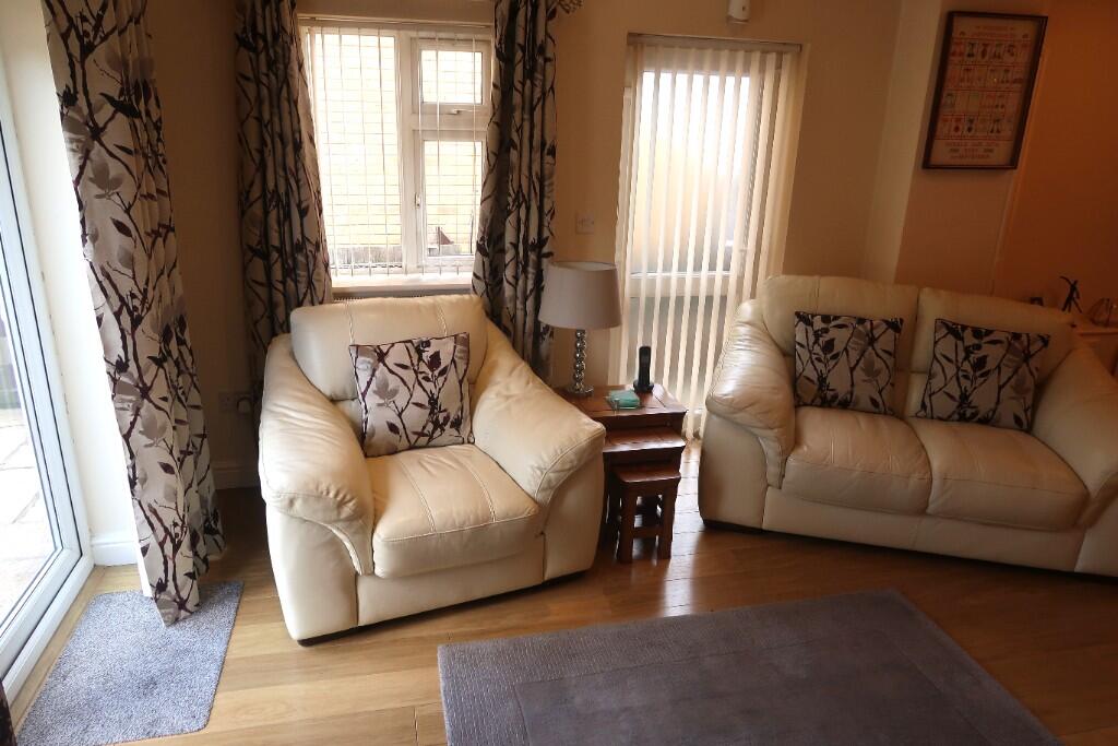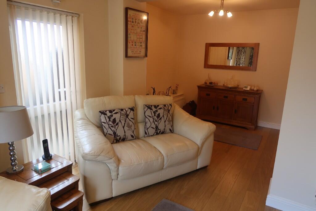 A superbly presented extended semi detached bungalow offering a large lounge, modern fitted kitchen with spacious dining area, modern shower room and two double bedrooms with fitted wardrobes. Front and rear gardens. Garage with rear lane access. No chain.