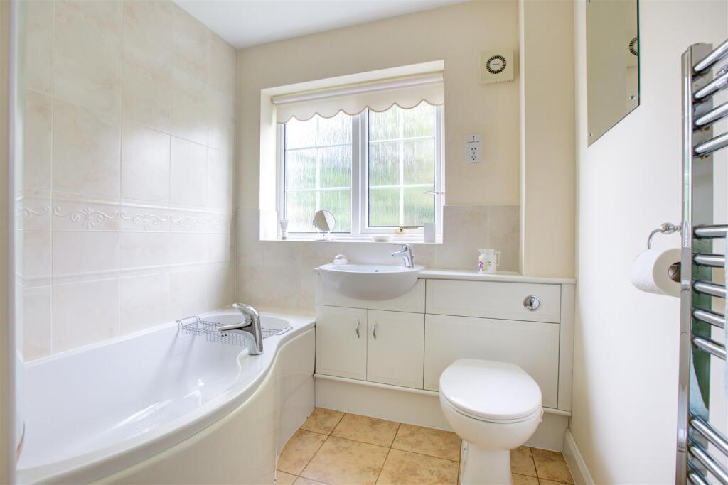 The property appears to be in good condition, with a well-maintained exterior and interior. The kitchen and bathrooms look relatively modern and well-equipped. The garden is of a reasonable size, providing ample outdoor space. The property also has a garage.