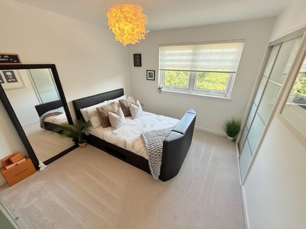 For sale: Stunning modern top floor apartment in sought-after Lochty Meadows development by Raith Homes. Corner unit with spacious accommodation, bay window, security entry, communal landing, open plan living, two bedrooms, en-suite, modern bathroom, double wardrobes. DG, GCH, own attic, shared g...