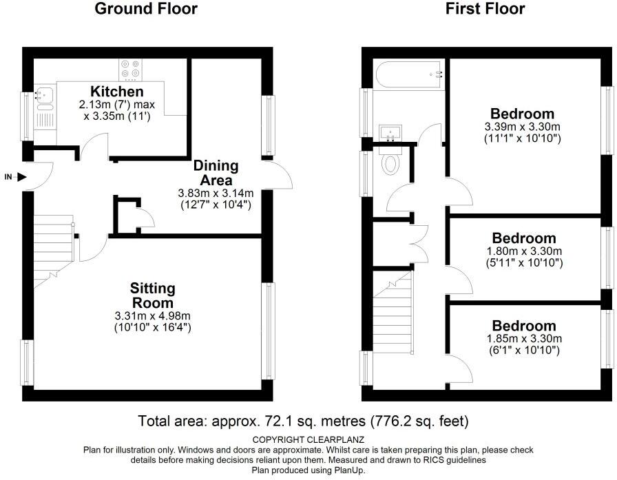 Land: The property includes a garden, as shown in the provided images. The plot size is 776.20 sqft, which is relatively small for a family home but adequate for the size of the property.