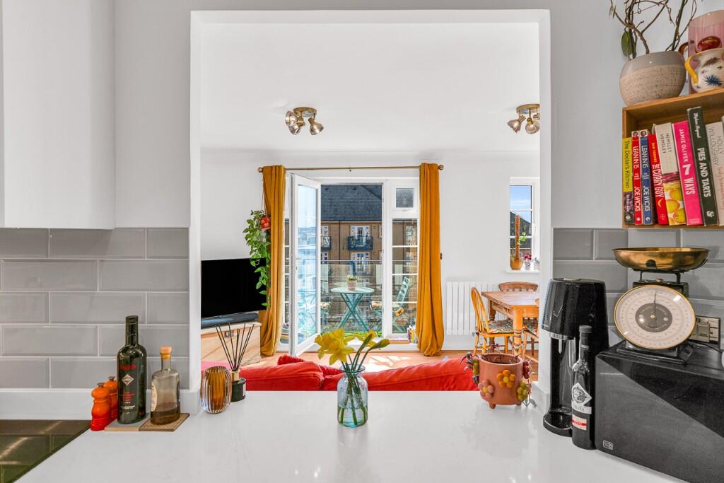 The property is a two-bedroom, two-bathroom apartment located in Newland Gardens, Hertford. It’s part of a development close to Hertford East Station and the town centre. The apartment is on the third floor and benefits from a balcony overlooking communal gardens.