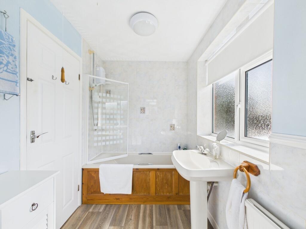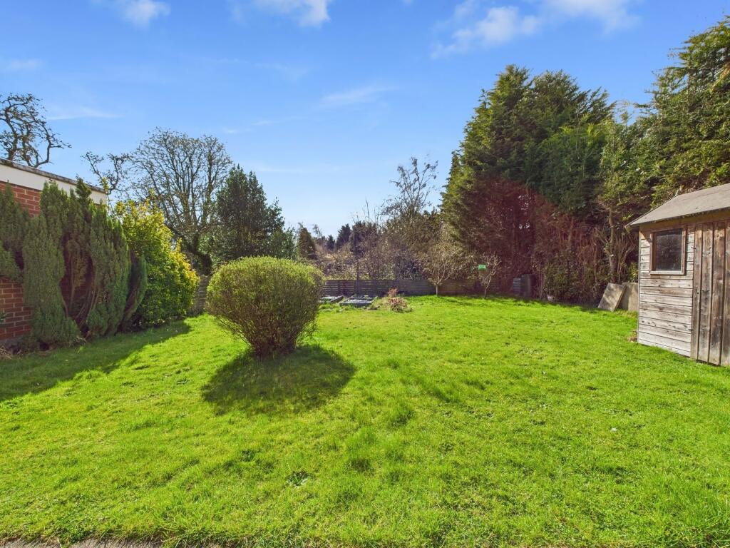 Based on the images provided, the property appears to be in good condition. There is no obvious evidence of significant repairs or renovations needed. The kitchen and bathroom appear relatively modern and well-maintained. The garden is of a reasonable size, with a shed and some raised garden beds. The property benefits from a garage.