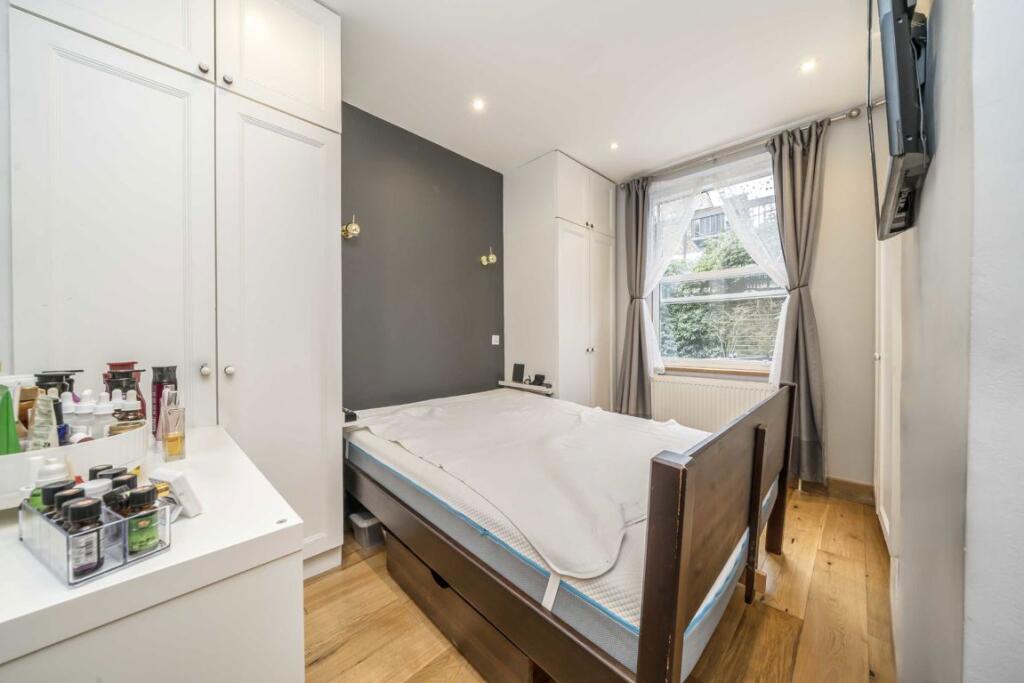 This well-presented two-bedroom garden flat is situated within a mid-terraced Victorian conversion in the Kensal Rise Triangle. It features a front reception room with a bay window and ample fitted storage, a separate kitchen, and offers potential for extension (STPP). The property is available c...