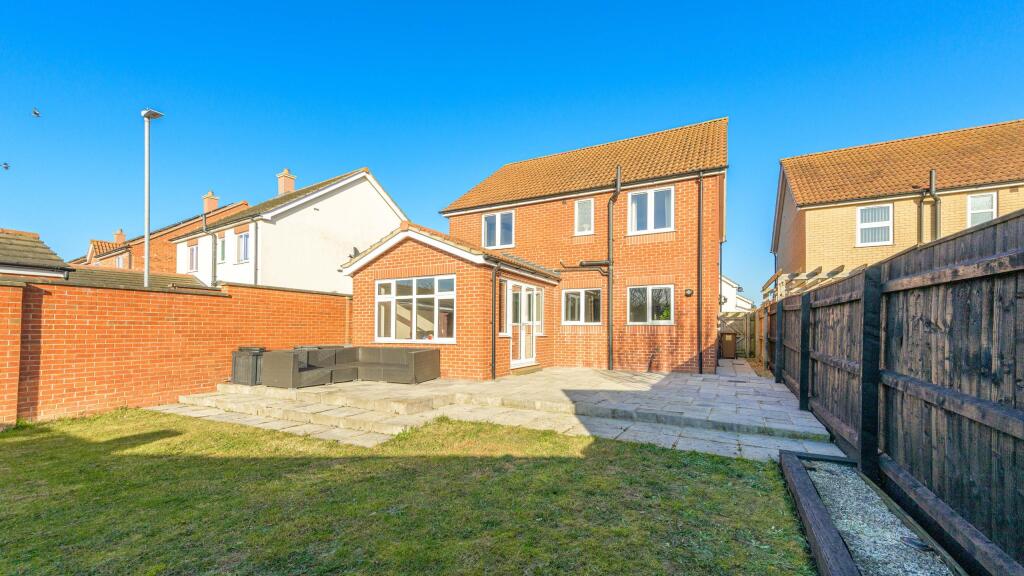 A four bedroom detached house at the end of a cul-de-sac on the outskirts of town and within walking distance to St Thomas Primary School. Having over 1,400 square feet of well presented accommodation with a garden room, re-fitted kitchen, re-fitted en-suite, garage and enclosed rear garden.