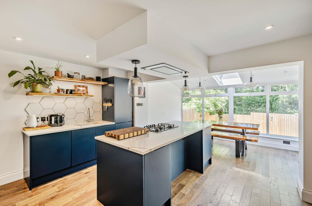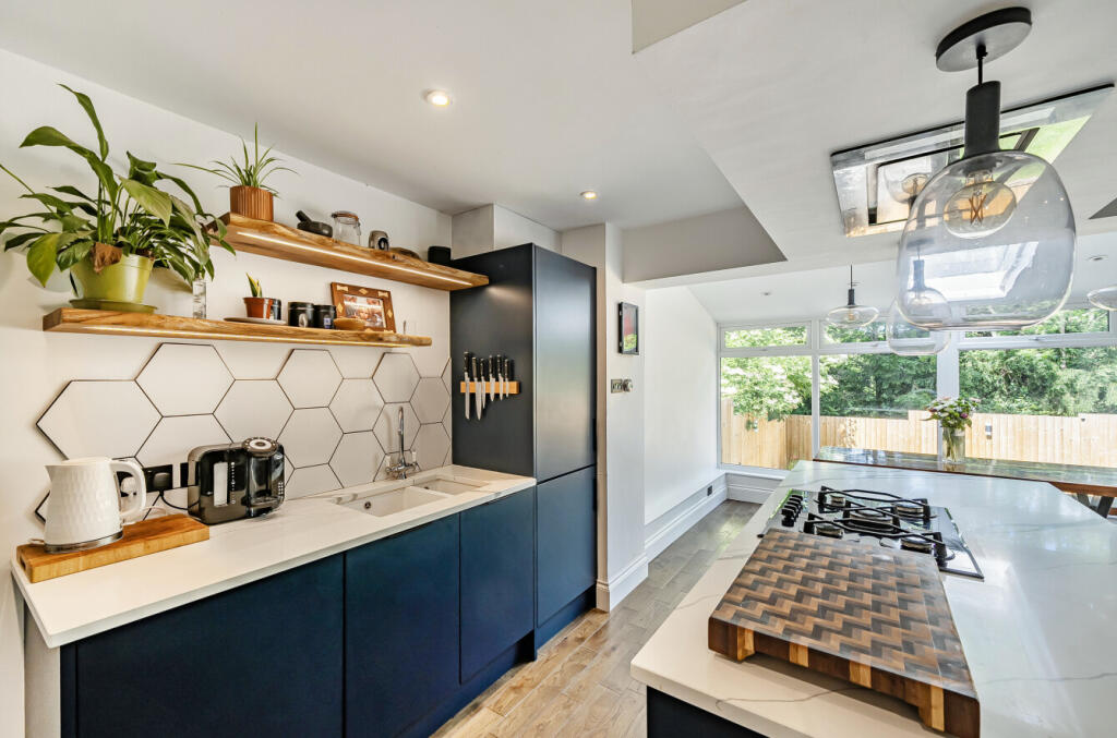 An extended three bedroom semi detached family home, located in a quiet residential development with enclosed gardens to the front and rear, a single garage and driveway parking for 2 cars.