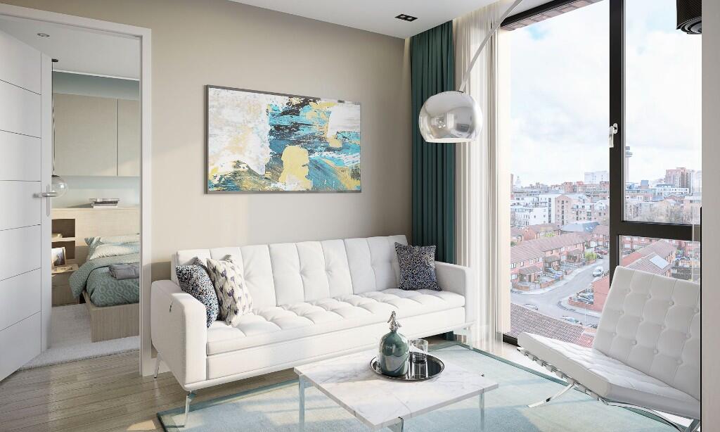 This is a one-bedroom apartment located in the Riverside area of Liverpool City Centre. The property appears to be in good condition, with modern interiors. The location is central, with access to local amenities and transportation links. The price is slightly above the average price per square foot for the area, but overall seems reasonable given the location and condition.