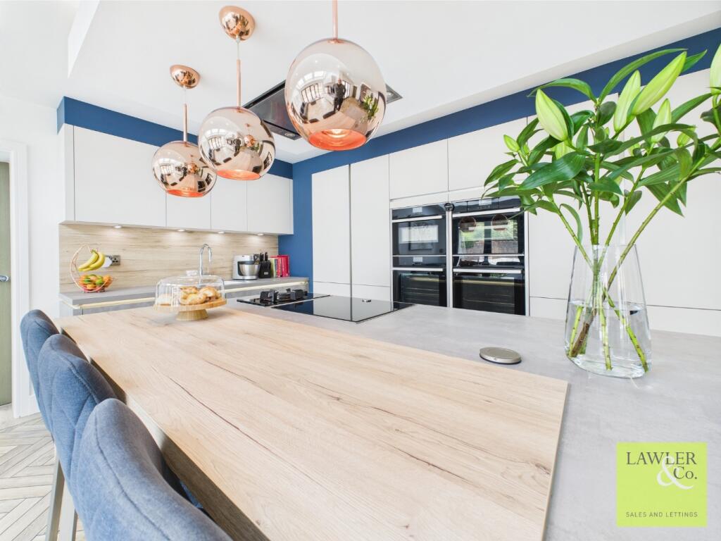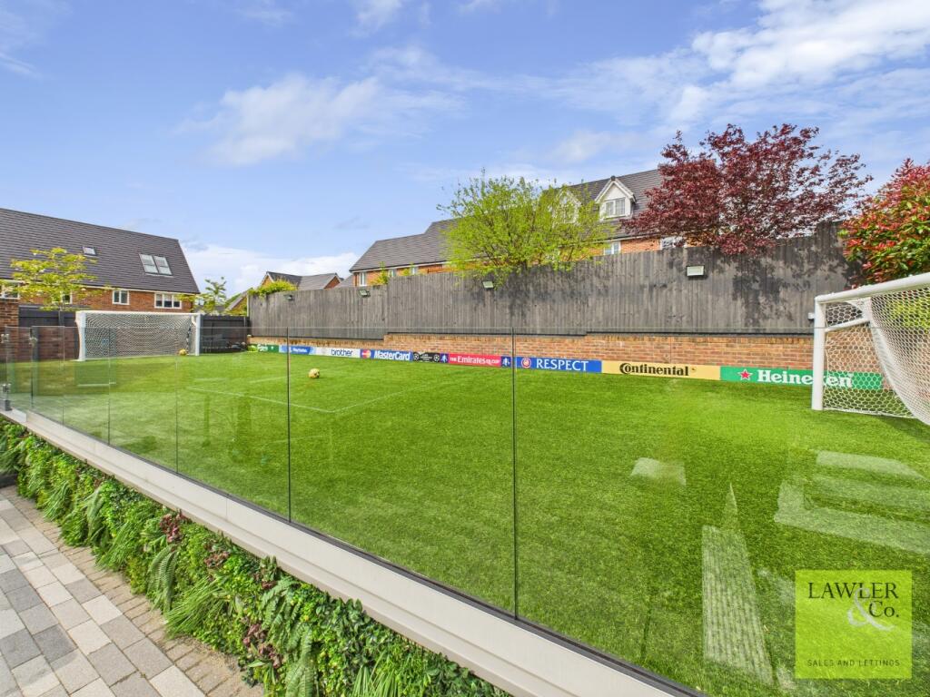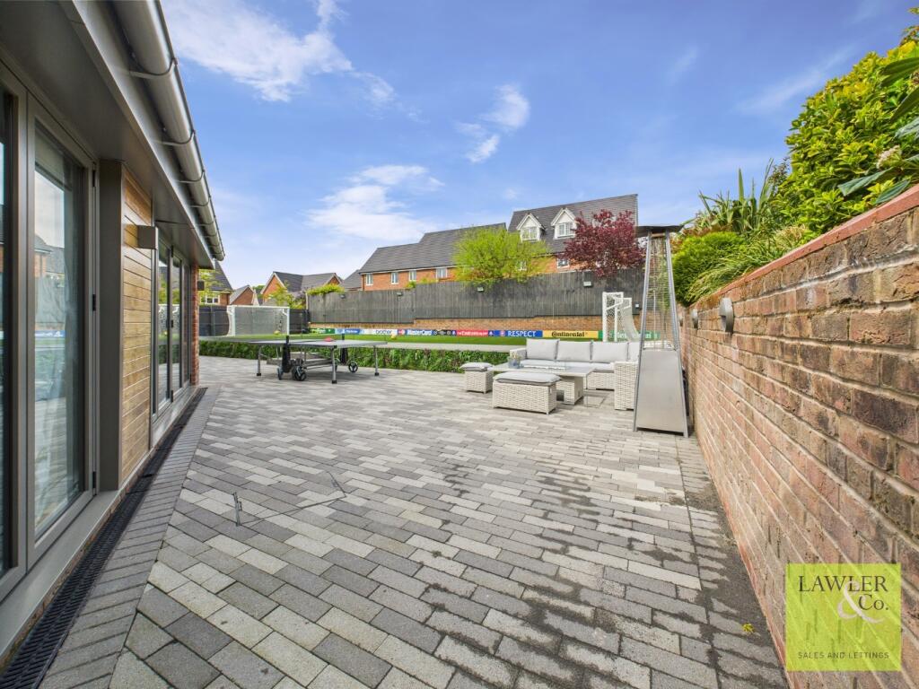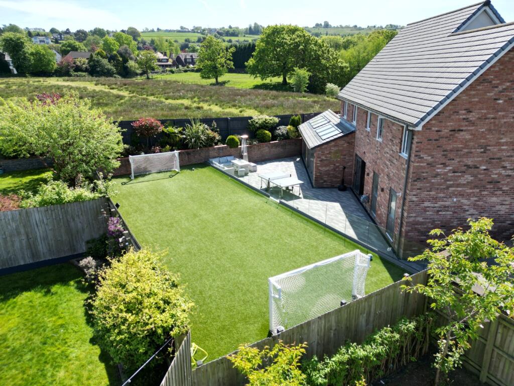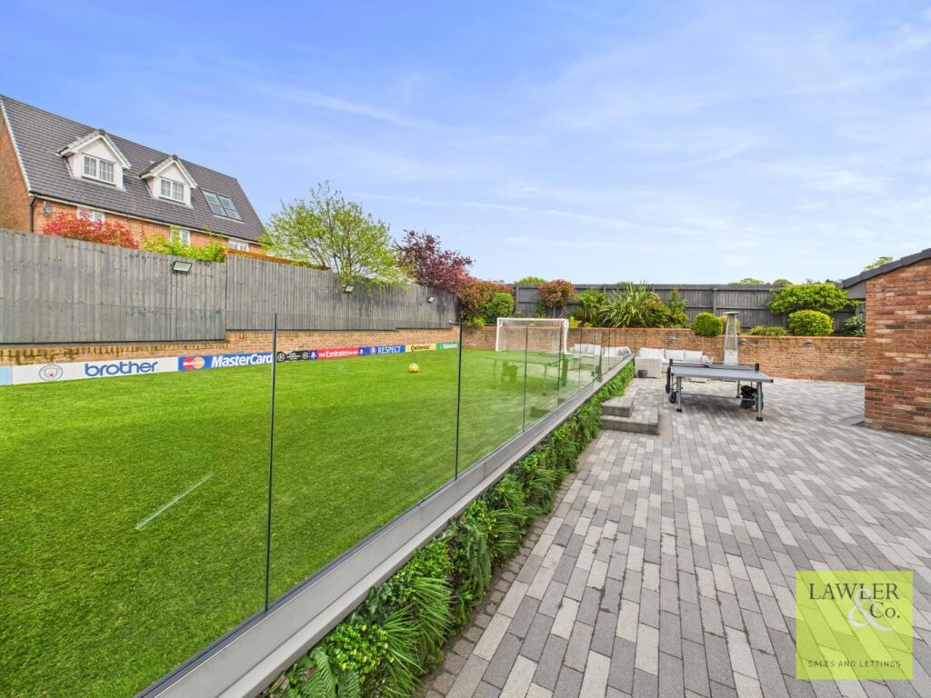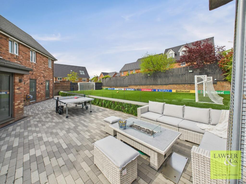 This property is a modern detached house located in Hyde, Greater Manchester. The location benefits from being relatively close to several primary schools which are rated as good by Ofsted, as well as several train stations providing access to Manchester and other areas. The property itself appears to be in excellent condition, with modern fixtures and fittings throughout. The images show a well-maintained garden with a substantial artificial lawn, ideal for families. The list price is significantly higher than the average for the area, however, given the size and condition of the property, and its modern features, the price may be justified.