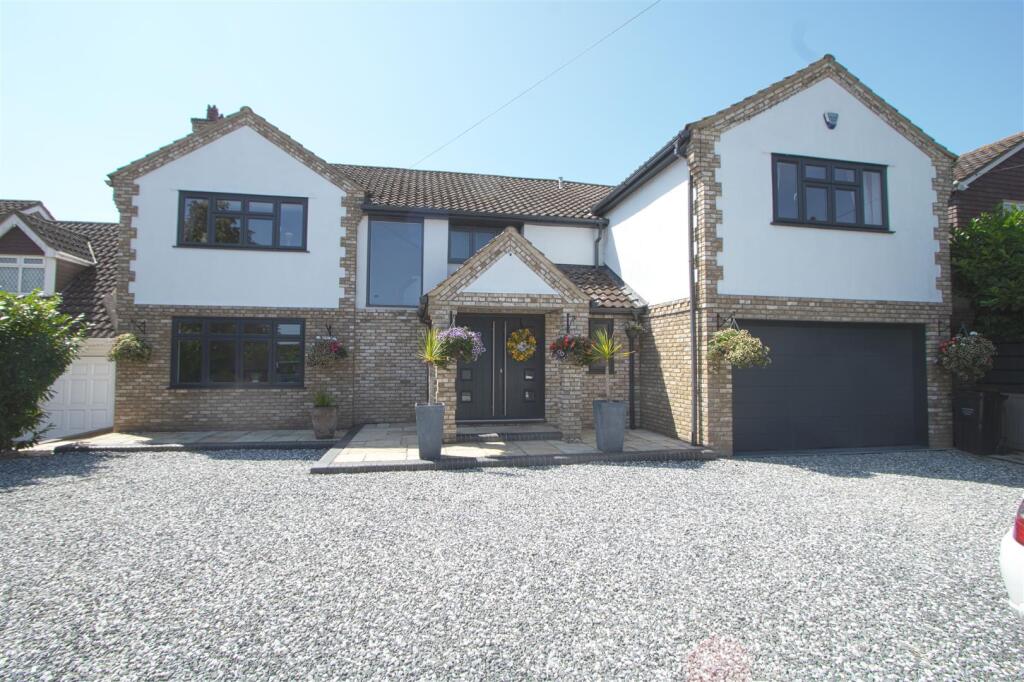 A detached property in Billericay, Essex, featuring 5 bedrooms, 5 bathrooms, and a generous 5,695 sqft of living space. The location is conveniently close to well-regarded schools and transportation links. The house is in good condition, showcasing modern interiors and a well-kept exterior. A spacious garden complements the property, complete with outbuildings. The asking price is £1,750,000.