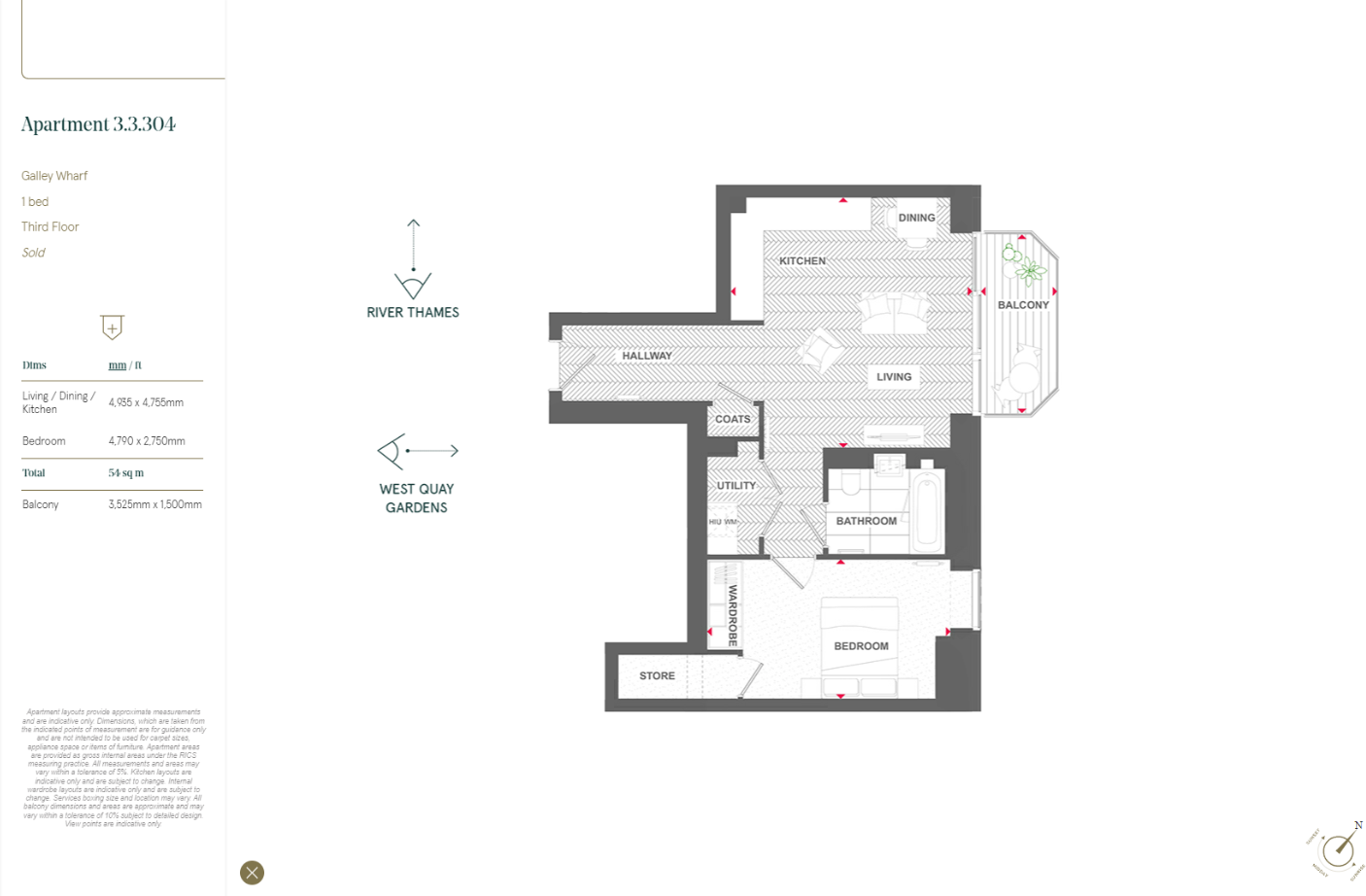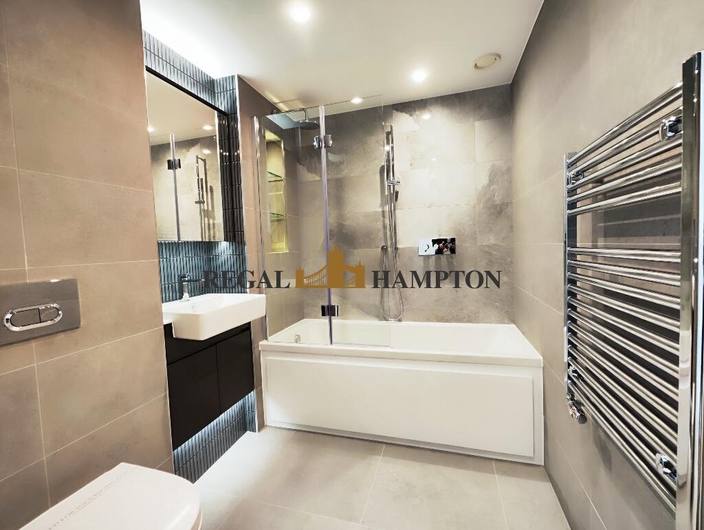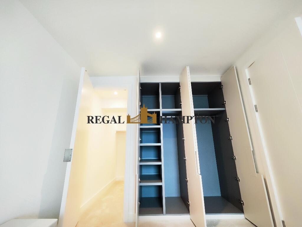 The apartment comprises of large, bright, open plan reception with balcony facing Thames River. Luxury kitchen is fitted with high end integrated appliances, polished stone worktops. Bedroom comes with fitted wardrobe and large storage space.