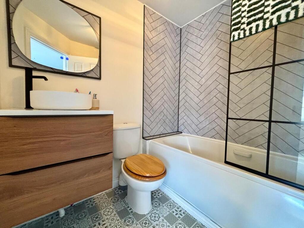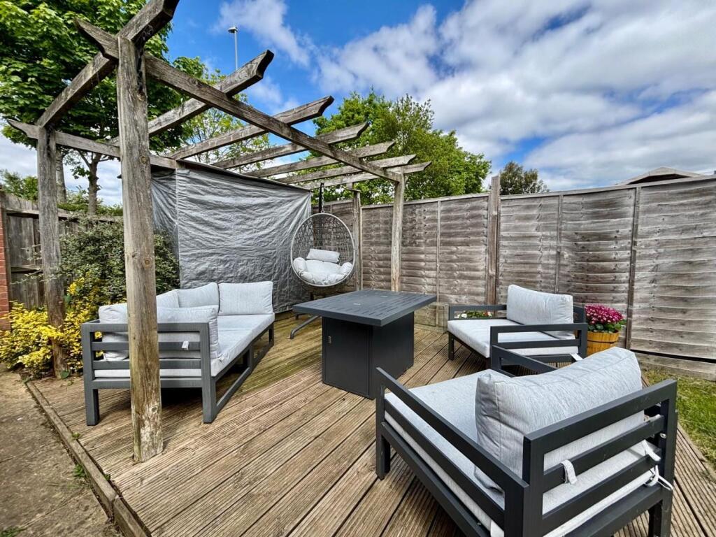 The property is a three-bedroom, three-bathroom terraced house located in Grange Park, Northampton. It is in good condition and well-maintained, with a modern and stylish interior. The garden is also well-maintained. The location is reasonably good, with several schools and a train station nearby. However, further information is needed to accurately assess the location, land, and price scores.