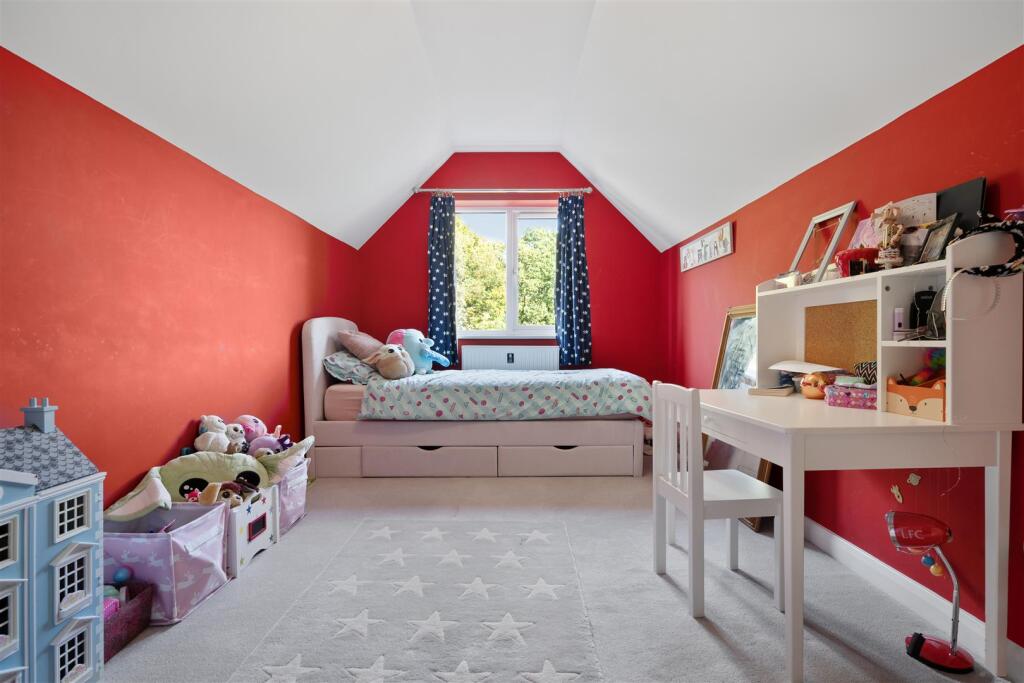 A four bedroom, two bathroom semi-detached home with a driveway and south facing garden overlooking open fields.