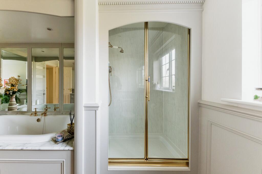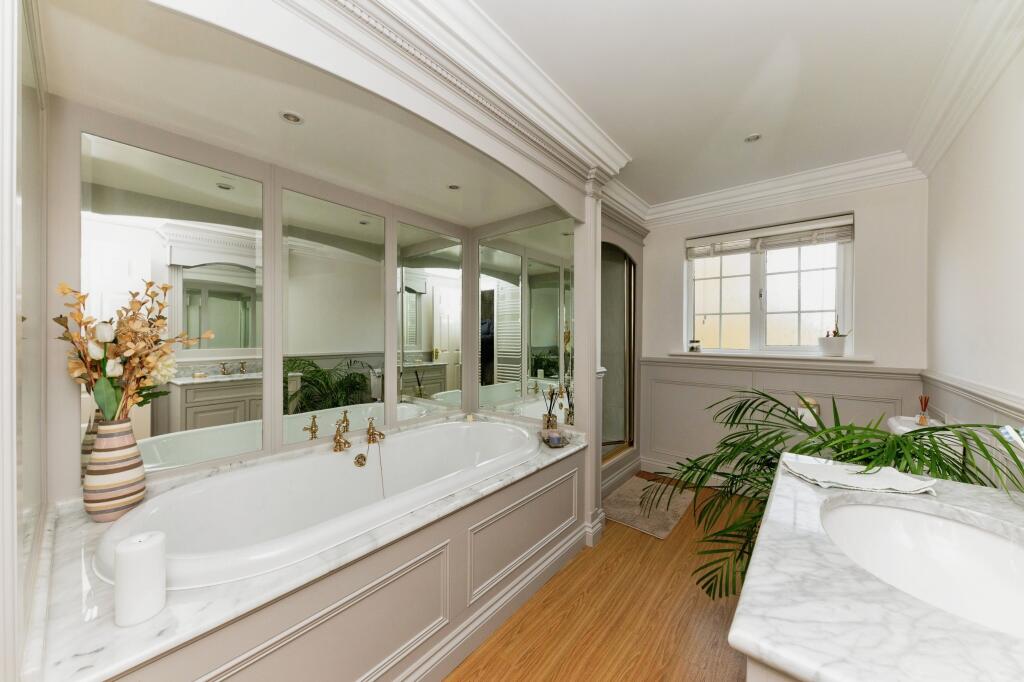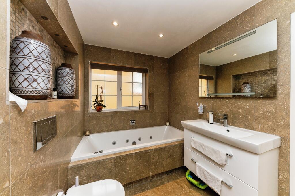 The property itself appears to be in excellent condition. The images show a well-maintained interior with modern fixtures and fittings. The kitchen and bathrooms are particularly impressive, suggesting recent renovations or high-quality construction. The property also benefits from a sizeable garden, adding to its overall appeal.