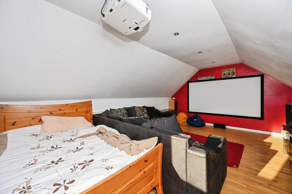 This is a detached property located in Palatine Close, Wigan. It features 4 bedrooms and 2 bathrooms. The property appears to be in good condition, with a modern kitchen and bathrooms. It also benefits from a garden with a decked area. The location is convenient for commuters, with Pemberton train station nearby, and families, with several schools in close proximity. The price is slightly above the average for the area.
