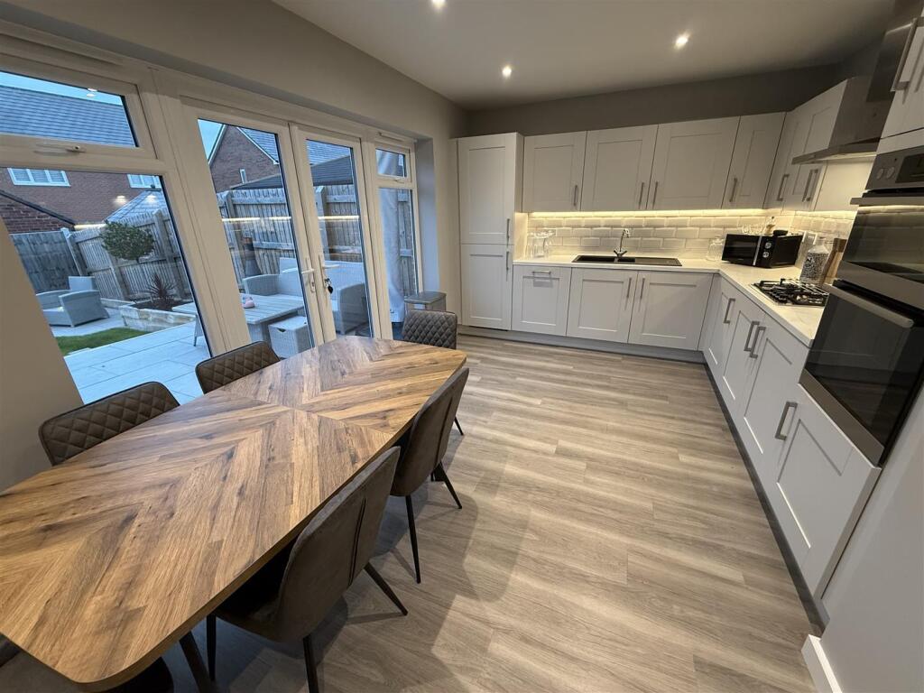 This is a well-presented, modern detached property located in a residential area of Congleton East. The house benefits from a modern kitchen and bathrooms, a good-sized garden with a patio, and off-street parking with a garage. Its proximity to local schools and transport links makes it a desirable family home. The property appears to be in excellent condition and is ready for immediate occupation.