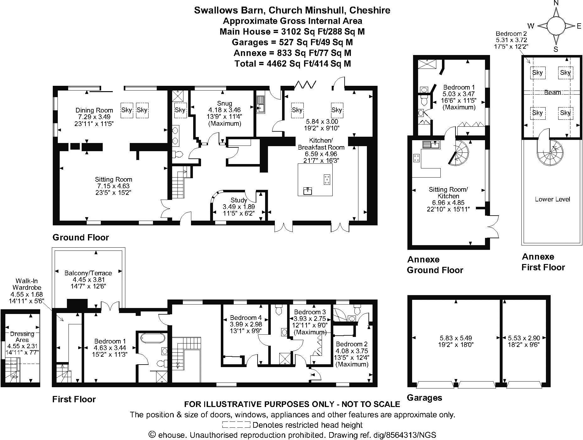 This property presents a stunning barn conversion in the sought-after village of Church Minshull, Cheshire. The extensive use of high-quality materials and contemporary design creates a luxurious and comfortable living space. The six bedrooms and five bathrooms offer ample accommodation, suitable for a large family or those seeking generous space. The open-plan living areas, featuring a modern kitchen and multiple reception rooms, are designed for both entertaining and relaxation. Large windows throughout take full advantage of the stunning views of the surrounding countryside. The property also benefits from a substantial plot of land, which provides ample outdoor space, seclusion and privacy. The addition of a separate annexe adds further versatility and potential for additional income or guest accommodation. The location in Church Minshull offers a balance of rural tranquility and accessibility to nearby towns and transport links. Overall, the property’s combination of high-quality finishes, spacious layout, desirable location, and substantial land makes it a premium offering within the Cheshire housing market. Note that the absence of precise local comparable property sales data to calculate a price per square foot hinders a precise appraisal of its value relative to local market averages.