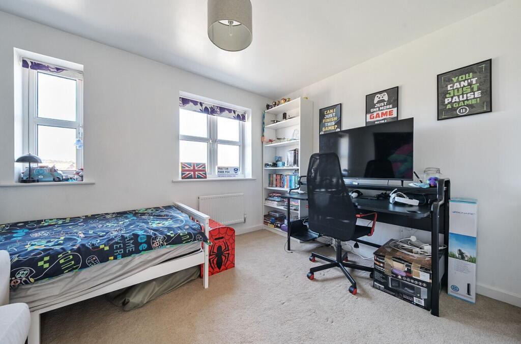 Located on Pierce Road in Tidworth, this three-bedroom townhouse offers accommodation arranged over three floors.