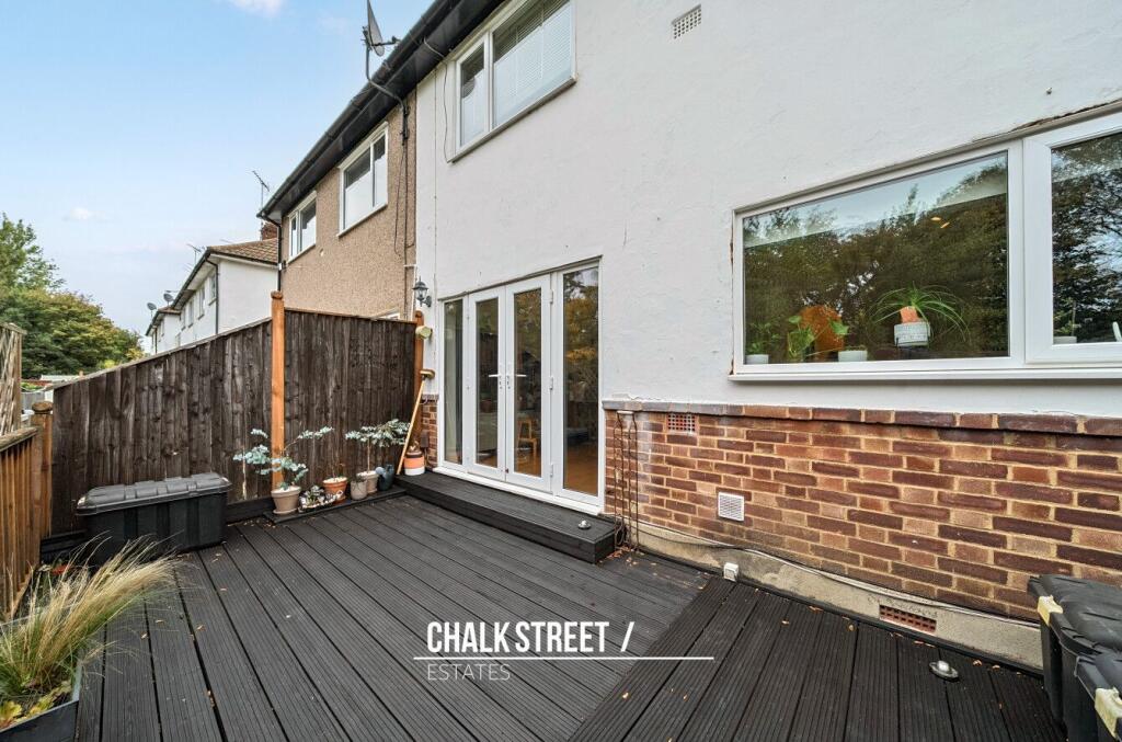 This is a two-bedroom maisonette located in Hornchurch, Greater London. The property is in good condition, with a modern kitchen and bathroom. It benefits from a decking area to the rear. The property is located close to schools and transportation links. The asking price of £325,000 appears reasonable given the location, condition, and size of the property.