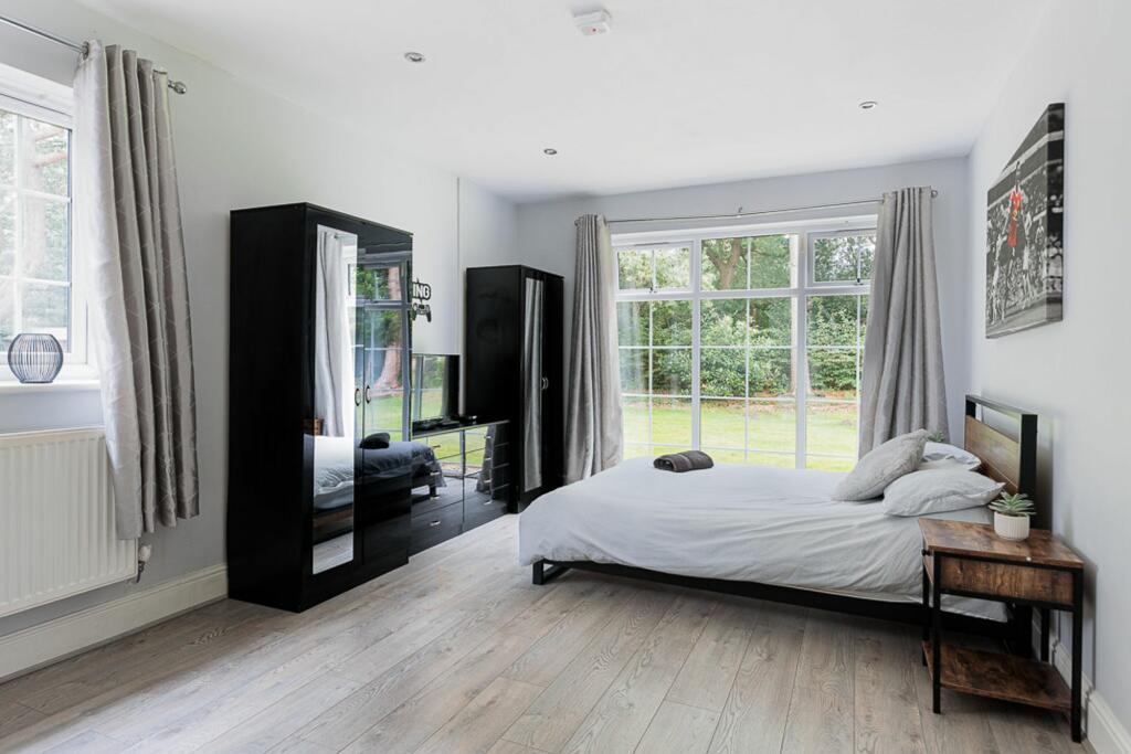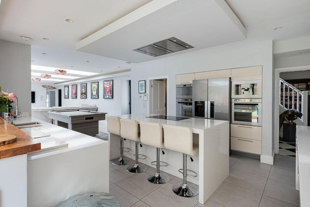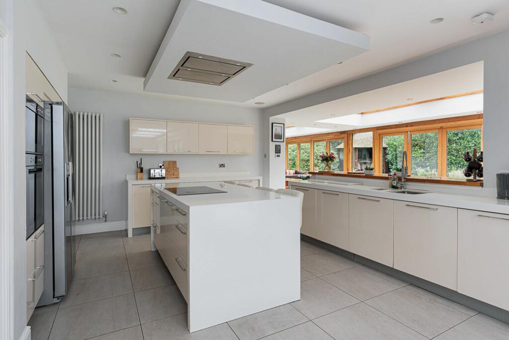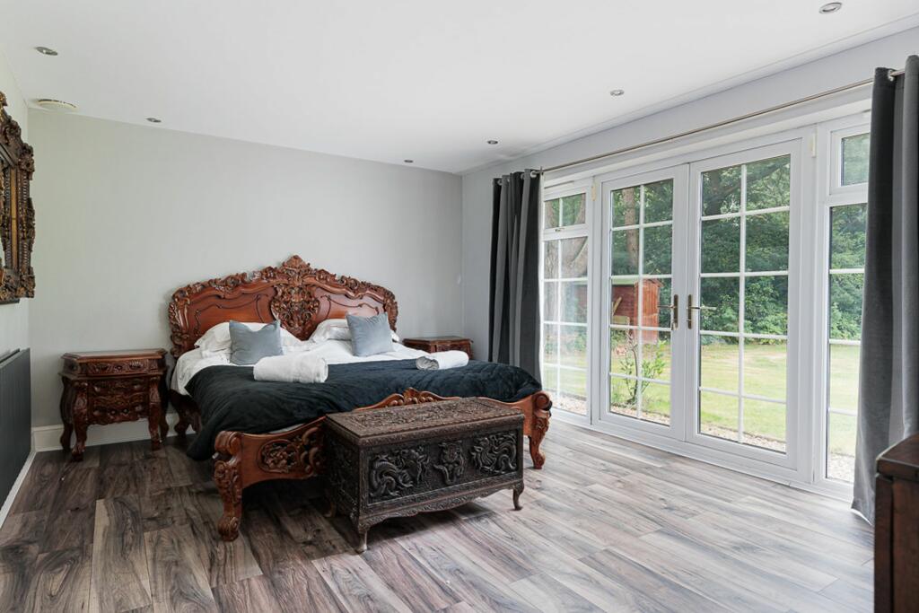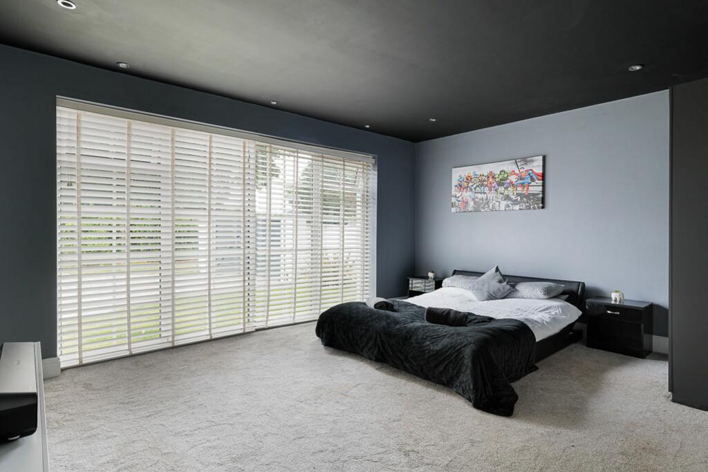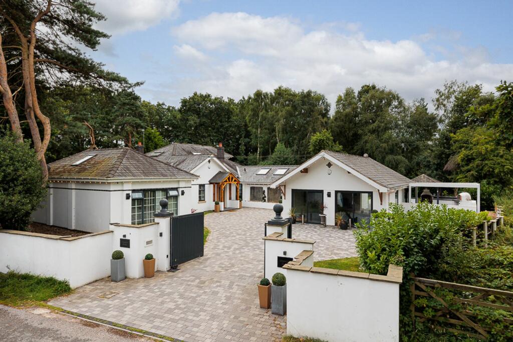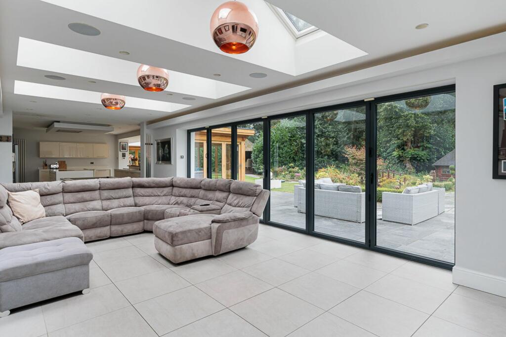Stunning 5-bed detached house with modern luxury and open-plan living space. Features indoor pool, 4 bathrooms, large enclosed plot with electric gates. Sought-after location with no onward chain.