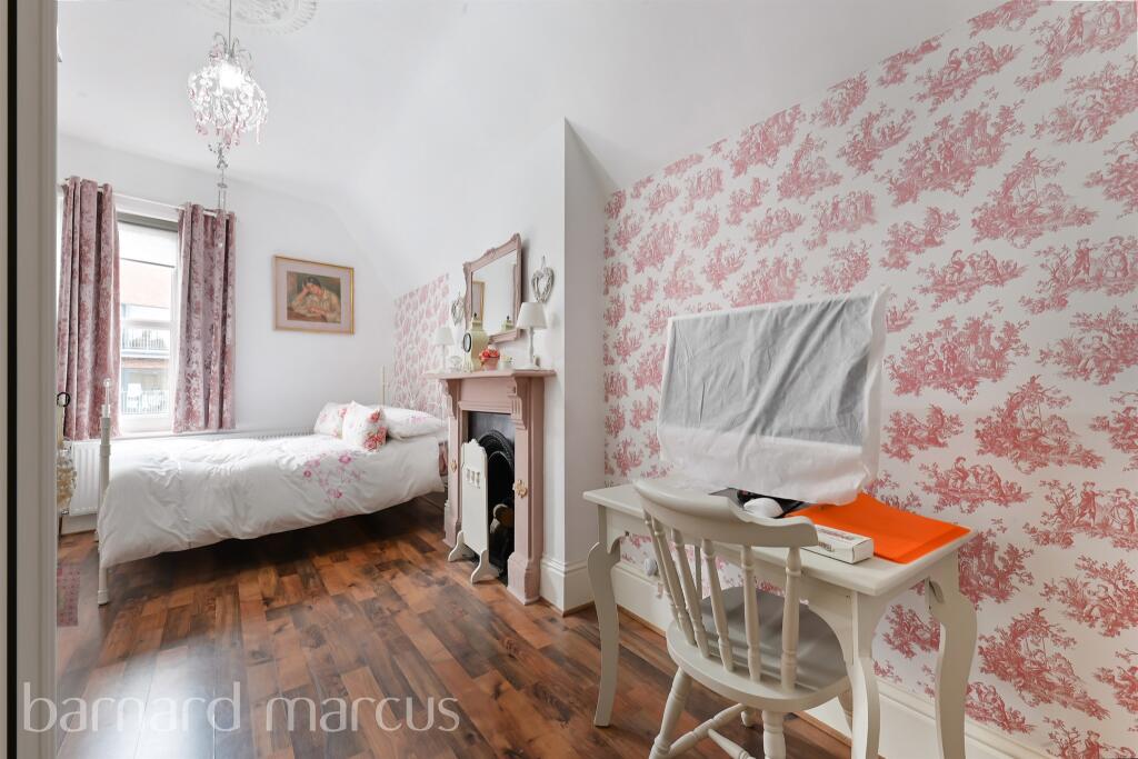 A substantial four bedroom upper floor maisonette, spread across three floors with three bathrooms, separate reception room, eat-in kitchen and private roof terrace. This property needs to be viewed in person to be properly appreciated.