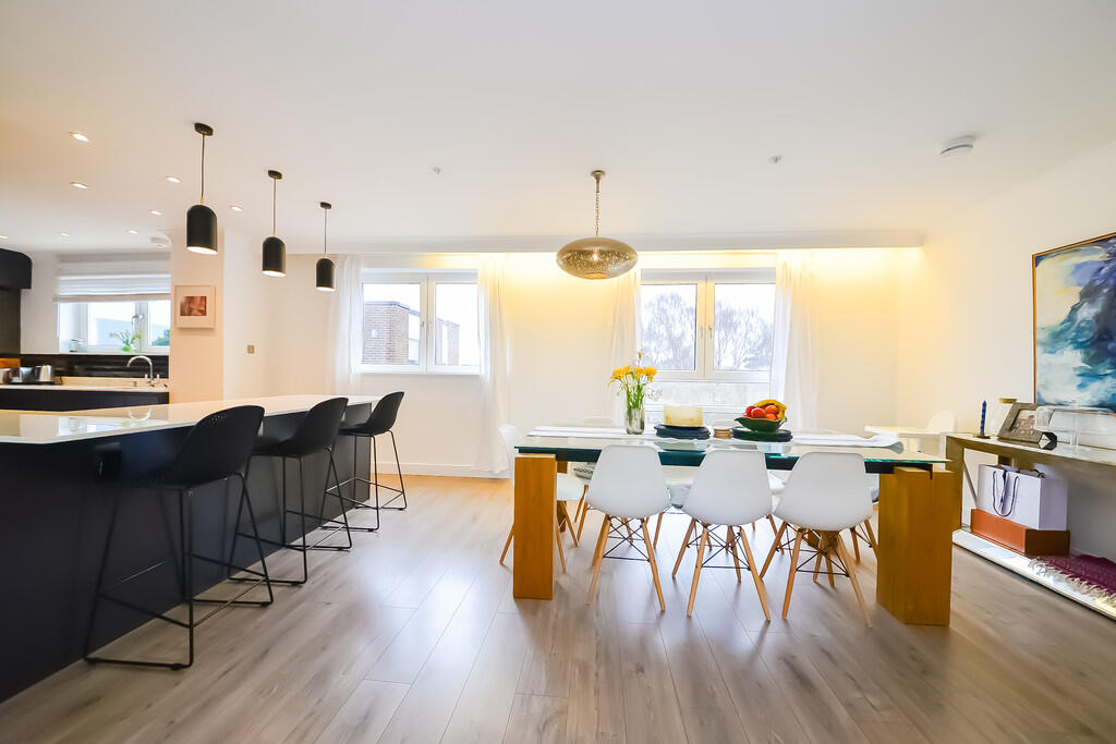 While the property is a flat, the images show access to communal green space, suggesting the presence of a communal garden area. The lack of a private garden is common for flats in this area and is reflected in the property price.