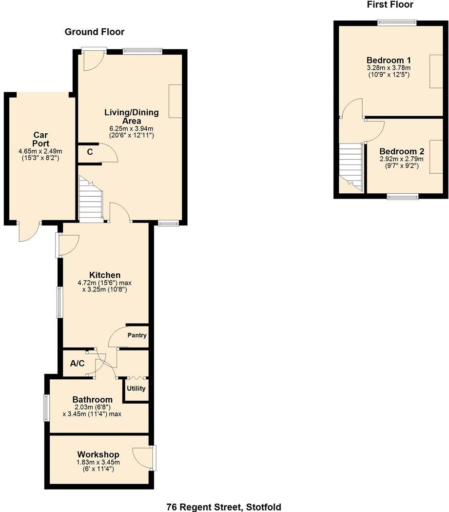 This property is a 2 bedroom semi-detached house located on Regent Street in Stotfold, Central Bedfordshire. The property benefits from a modern fitted kitchen and bathroom, and has been recently decorated throughout. There is a good-sized rear garden, and off-street parking. The location is convenient for local amenities and transport links. The property is priced at £350,000, which is below the average price for the area, but slightly above the average price per square foot. This is likely due to the smaller plot size compared to other properties in the area. The property is in good condition and well-maintained, making it a good value for money.
