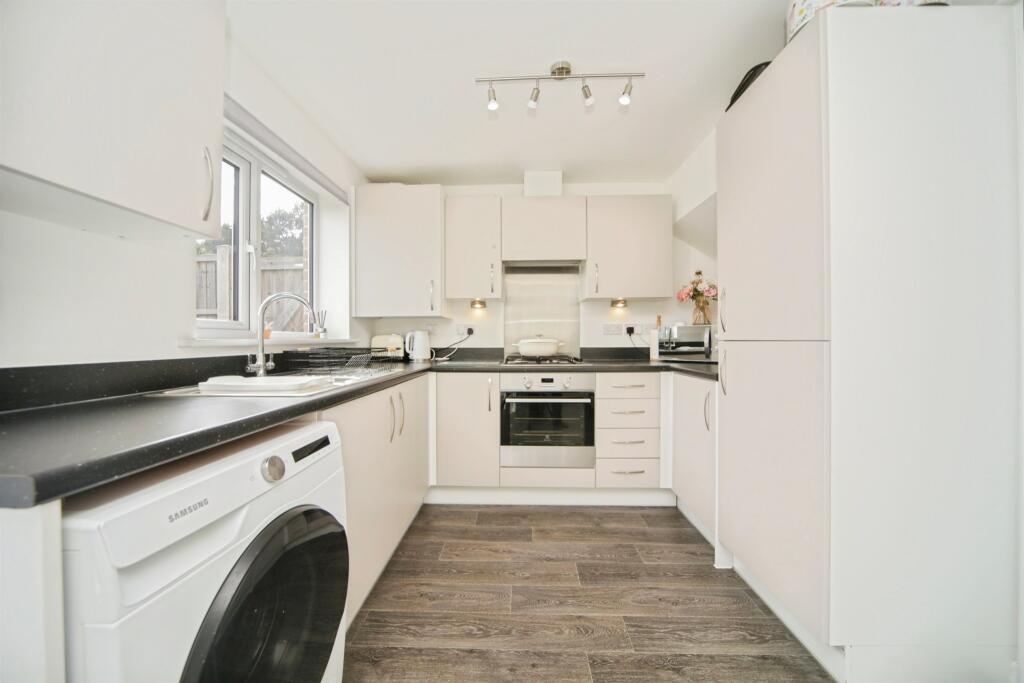 Nestled in peaceful Great Blakenham, this charming semi-detached home offers modern convenience with an NHBC warranty. It features a spacious lounge, integrated kitchen/diner, cloakroom, two double bedrooms, a family bathroom, off-road parking, and a rear garden with patio.