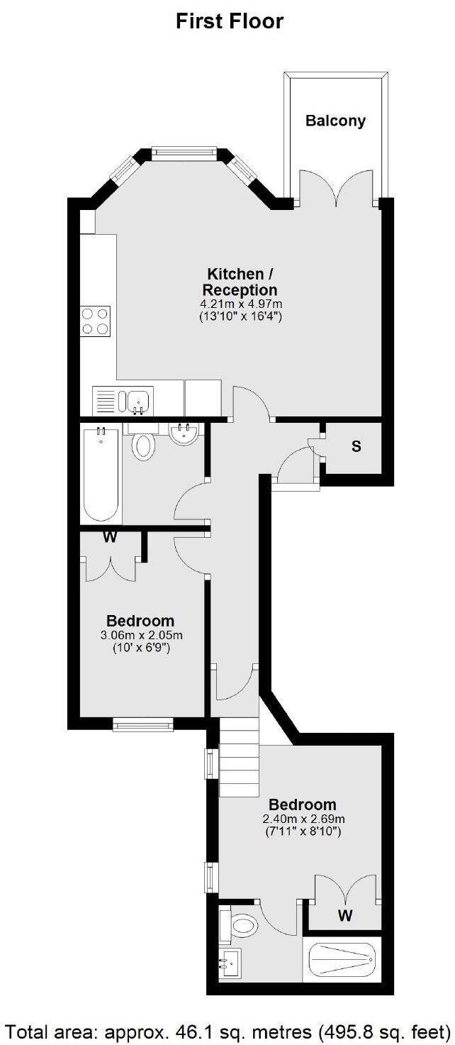 This bright two bedroom, two bathroom apartment is located on a quiet residential road. The property is situated on the first floor and comprises of a beautiful open plan kitchen reception area that leads off to a private balcony.