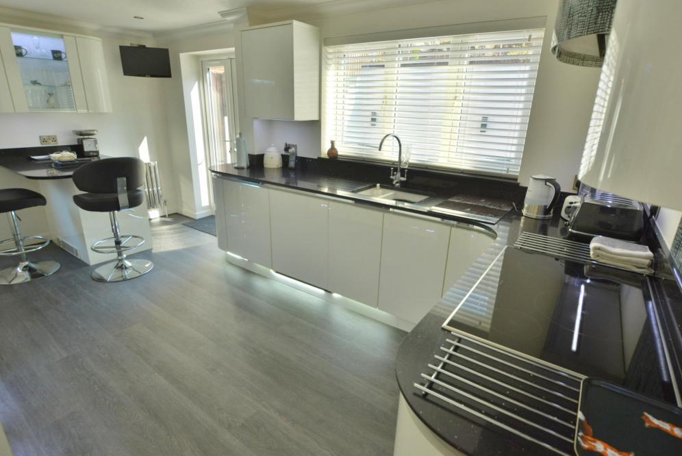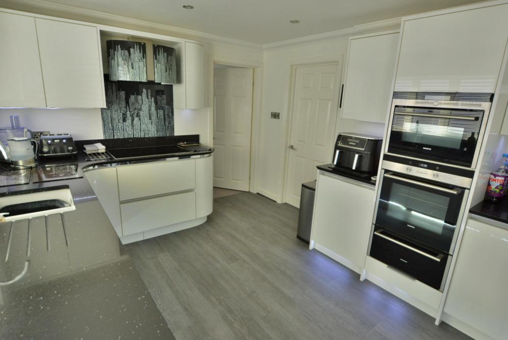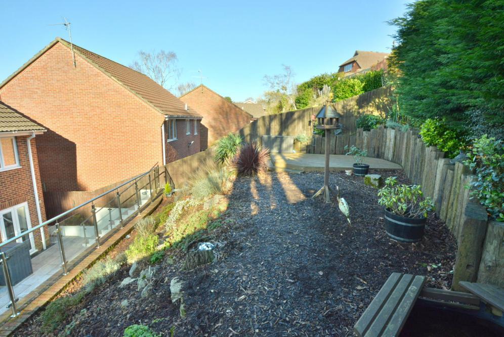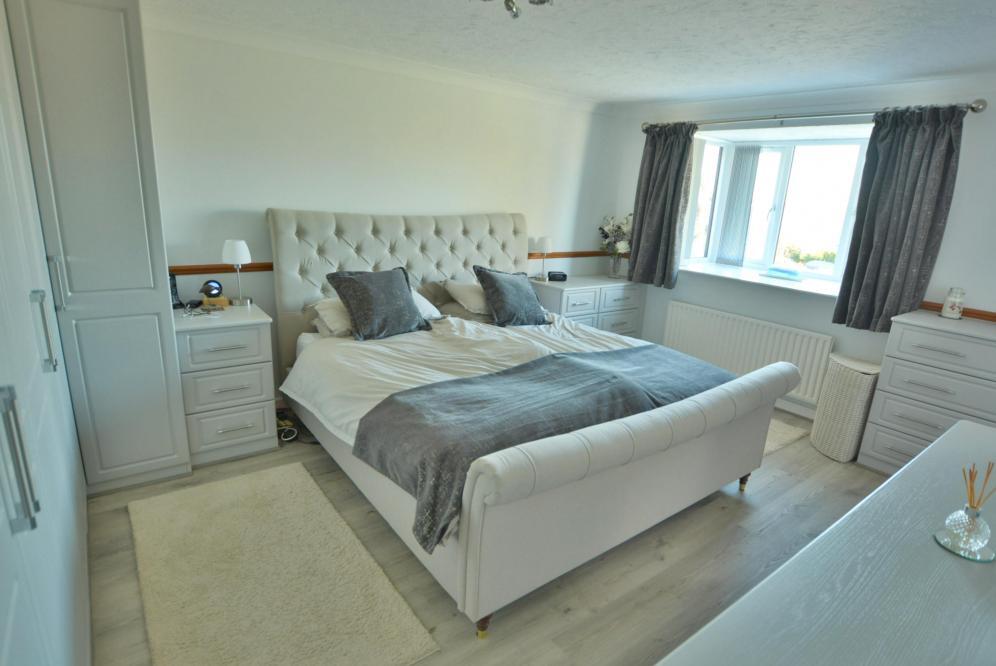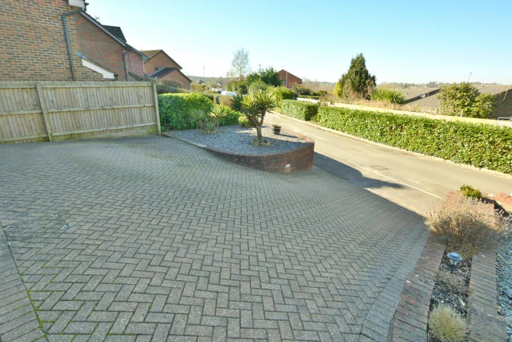 A four double bedroom detached family home with two bathrooms, two reception rooms, kitchen/diner, landscaped rear garden, garage and off road parking for several cars set on a elevated plot with far reaching views.