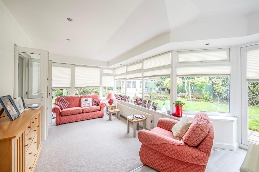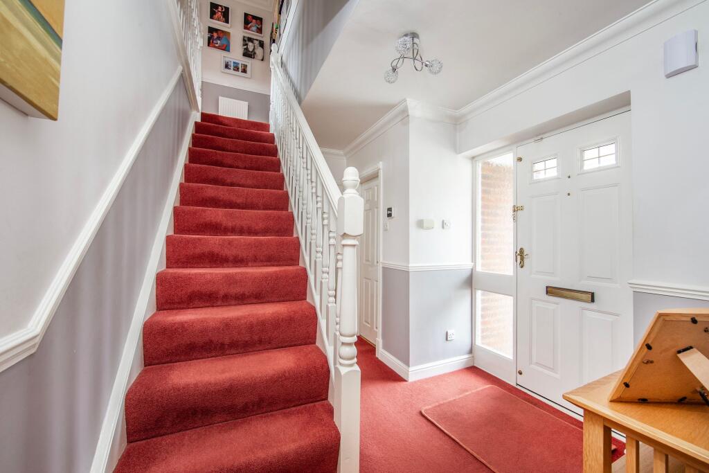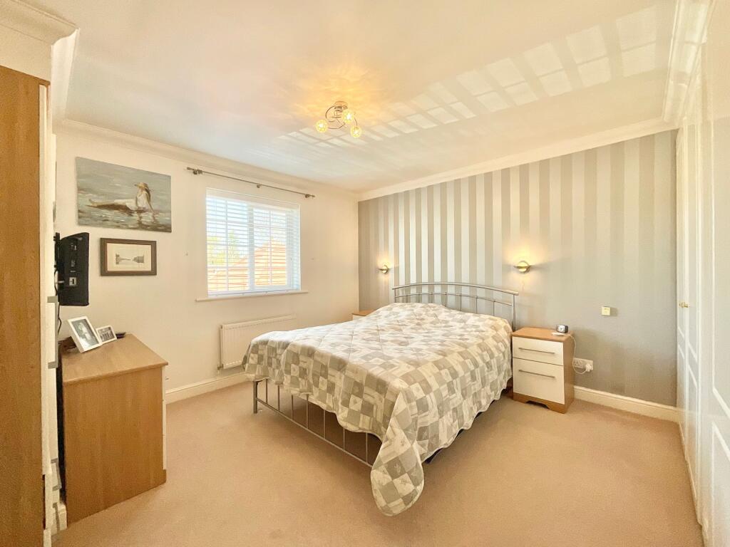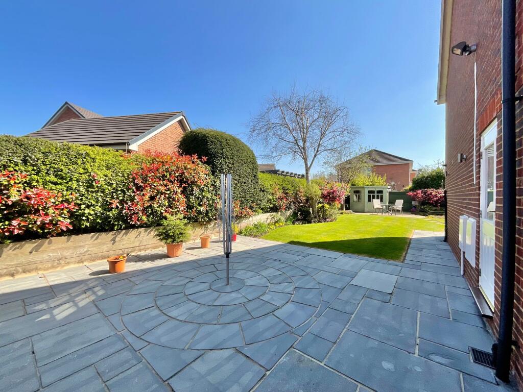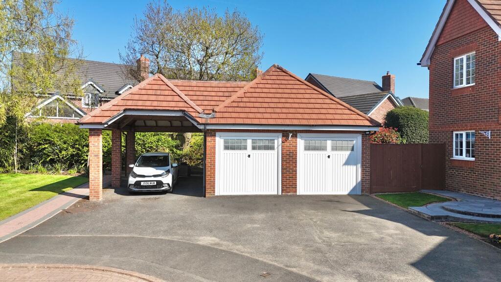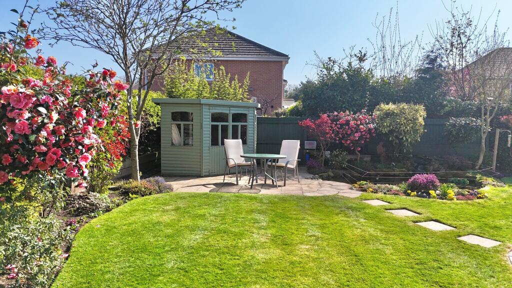 Stunning four bedroom detached home set on a corner plot within a peaceful cul-de-sac. Beautiful landscaped south facing garden, an extensive driveway, detached double garage with carport/motorhome!