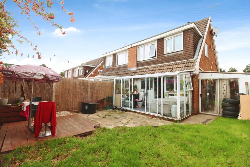 This is a three-bedroom semi-detached property located on Bramhall Drive in Eastham, Wirral. The house features a modern kitchen and bathroom, a conservatory, and a garden with both lawn and paved areas. The property is situated in a residential area with convenient access to local schools and transportation links, including Eastham Rake and Hooton train stations. The asking price of £180,000 appears competitive compared to other properties in the area, making it an attractive option for potential buyers. The property would be ideal for a small family.