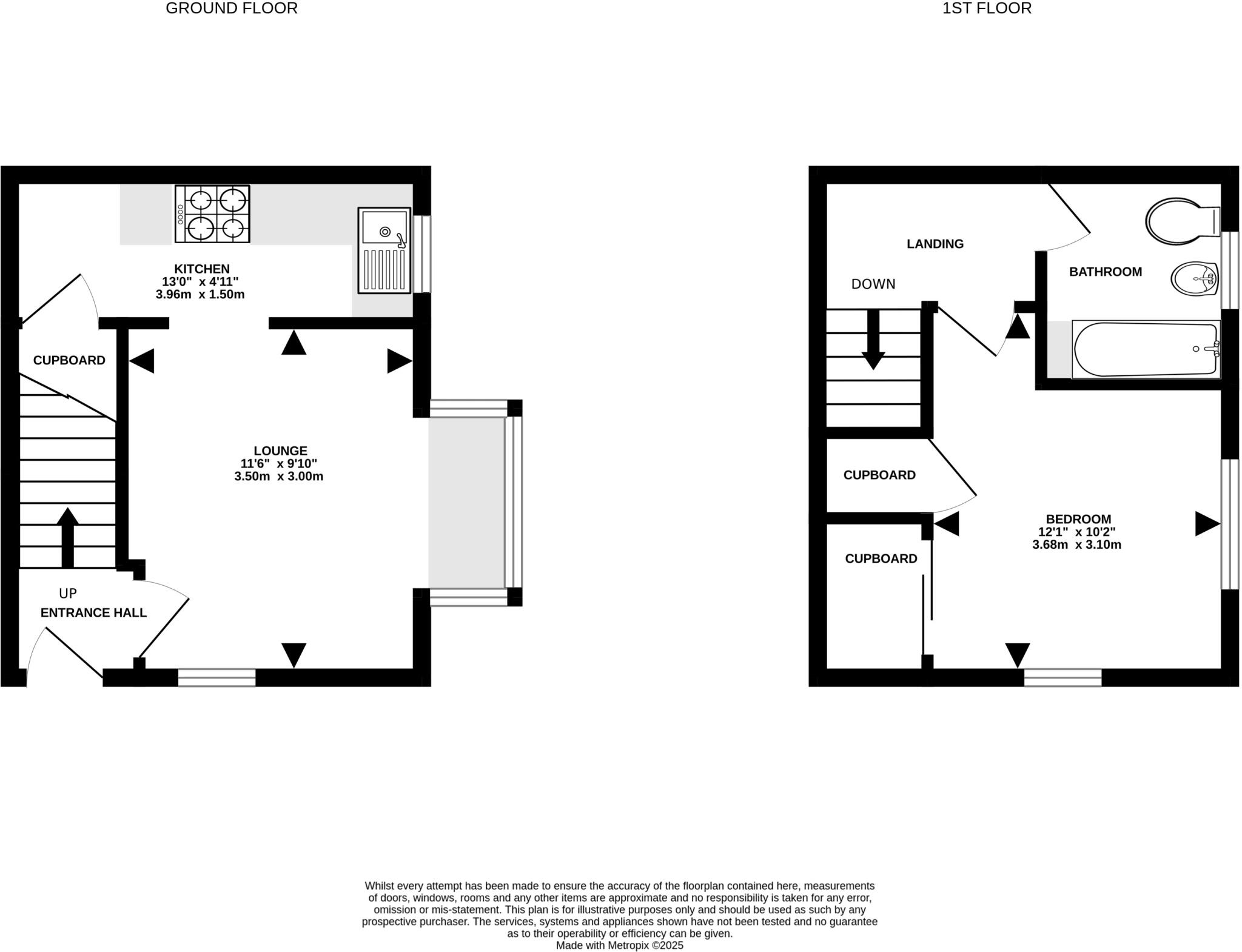 Bridges Estate Agents proudly present this freehold, one bedroom back to back house with a garden and two parking spaces. The property features an entrance hall leading to a dual aspect living room with a spacious bay window and an additional window, ensuring ample natural light. A full width kit...