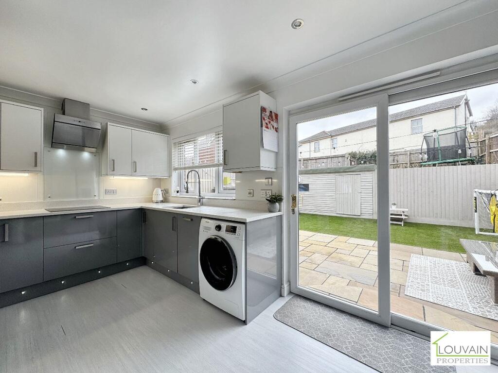 This property is a 3 bedroom, 3 bathroom link detached house located in Pontlottyn, Caerphilly. The property is modern in style and appears to be in excellent condition, having undergone recent renovations. The images show a well-maintained interior with a modern kitchen, updated bathrooms, and a stylish living area. The property also benefits from a good-sized garden with artificial turf, patio area, and a shed. The location is convenient, with nearby transportation links and schools. The list price is slightly higher than the average price for the area, but given the property’s condition, size, and features, it could be considered reasonable for the right buyer. The lack of plot size information in the listing is notable.