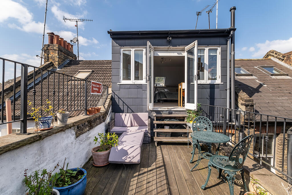 The property includes a small, but usable, private garden area, accessible from the kitchen and also benefits from a roof terrace. While not extensive, this outdoor space adds value and appeal.